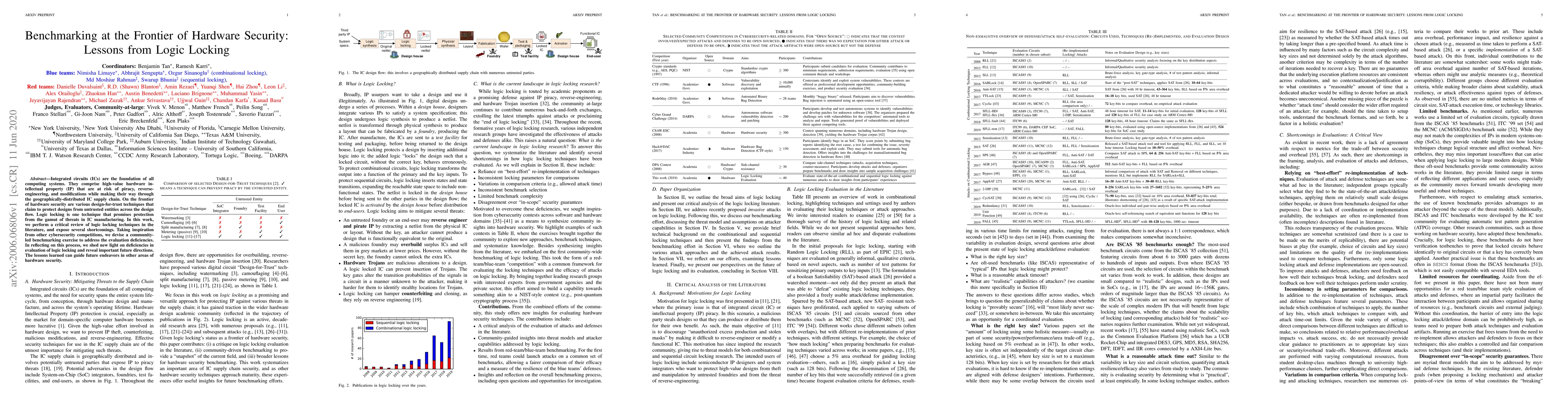 Integrated circuits (ICs) are the foundation of all computing systems. They comprise high-value hardware intellectual property (IP) that are at risk of piracy, reverse-engineering, and modifications while making their way through the geographically-distributed IC supply chain. On the frontier of hardware security are various design-for-trust techniques that claim to protect designs from untrusted entities across the design flow. Logic locking is one technique that promises protection from the gamut of threats in IC manufacturing. In this work, we perform a critical review of logic locking techniques in the literature, and expose several shortcomings. Taking inspiration from other cybersecurity competitions, we devise a community-led benchmarking exercise to address the evaluation deficiencies. In reflecting on this process, we shed new light on deficiencies in evaluation of logic locking and reveal important future directions. The lessons learned can guide future endeavors in other areas of hardware security.