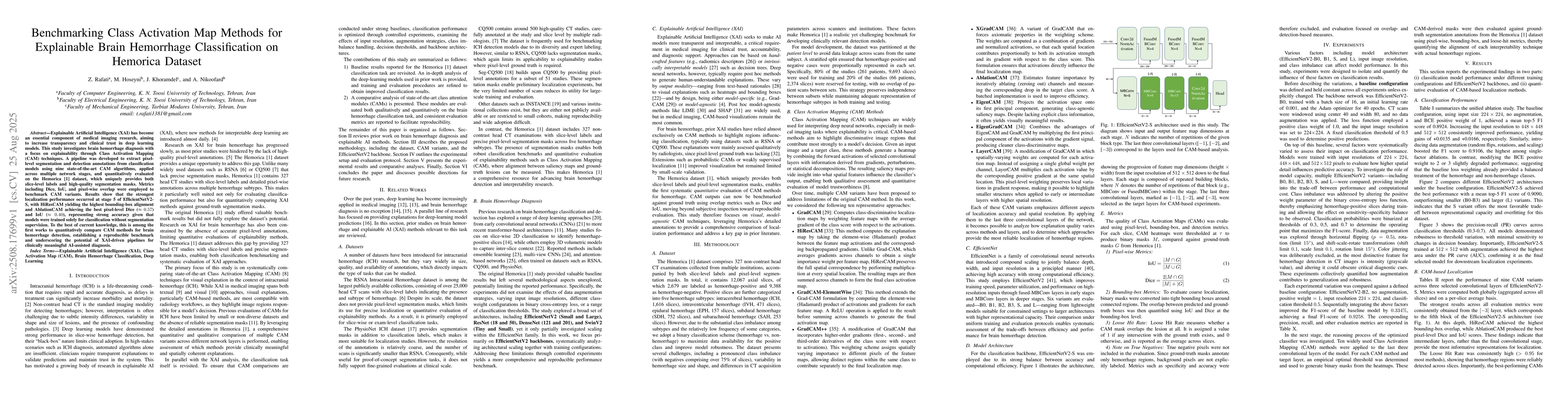 Explainable Artificial Intelligence (XAI) has become an essential component of medical imaging research, aiming to increase transparency and clinical trust in deep learning models. This study investigates brain hemorrhage diagnosis with a focus on explainability through Class Activation Mapping (CAM) techniques. A pipeline was developed to extract pixellevel segmentation and detection annotations from classification models using nine state-of-the-art CAM algorithms, applied across multiple network stages, and quantitatively evaluated on the Hemorica dataset, which uniquely provides both slice-level labels and high-quality segmentation masks. Metrics including Dice, IoU, and pixel-wise overlap were employed to benchmark CAM variants. Results show that the strongest localization performance occurred at stage 5 of EfficientNetV2S, with HiResCAM yielding the highest bounding-box alignment and AblationCAM achieving the best pixel-level Dice (0.57) and IoU (0.40), representing strong accuracy given that models were trained solely for classification without segmentation supervision. To the best of current knowledge, this is among the f irst works to quantitatively compare CAM methods for brain hemorrhage detection, establishing a reproducible benchmark and underscoring the potential of XAI-driven pipelines for clinically meaningful AI-assisted diagnosis.