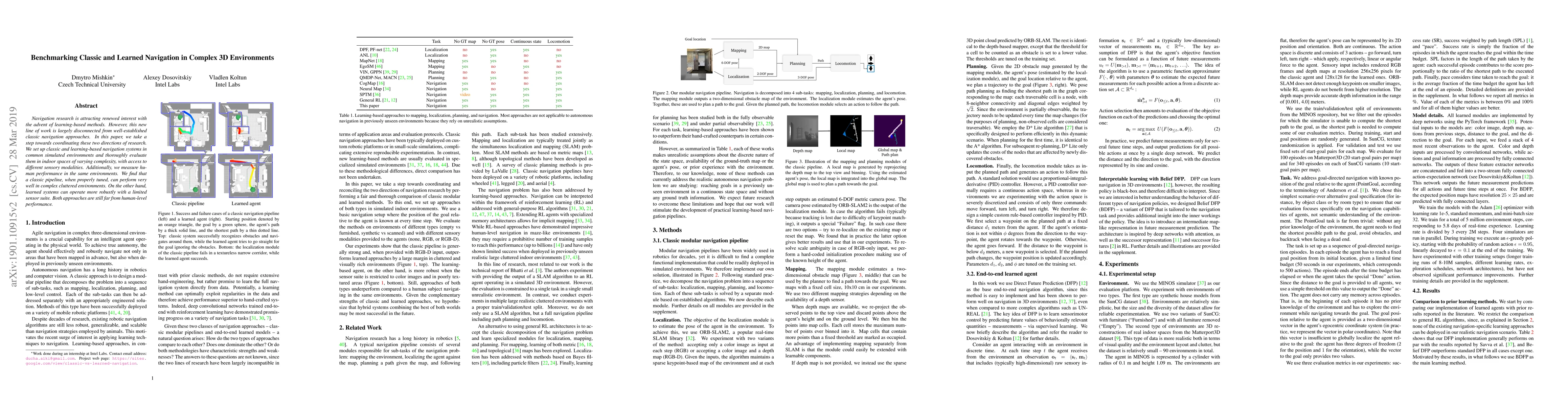 A study compares classic navigation methods with learning-based approaches in complex 3D environments, finding that a well-tuned classic pipeline can perform well, while learned systems excel with limited sensor data, but both still struggle to match human performance.