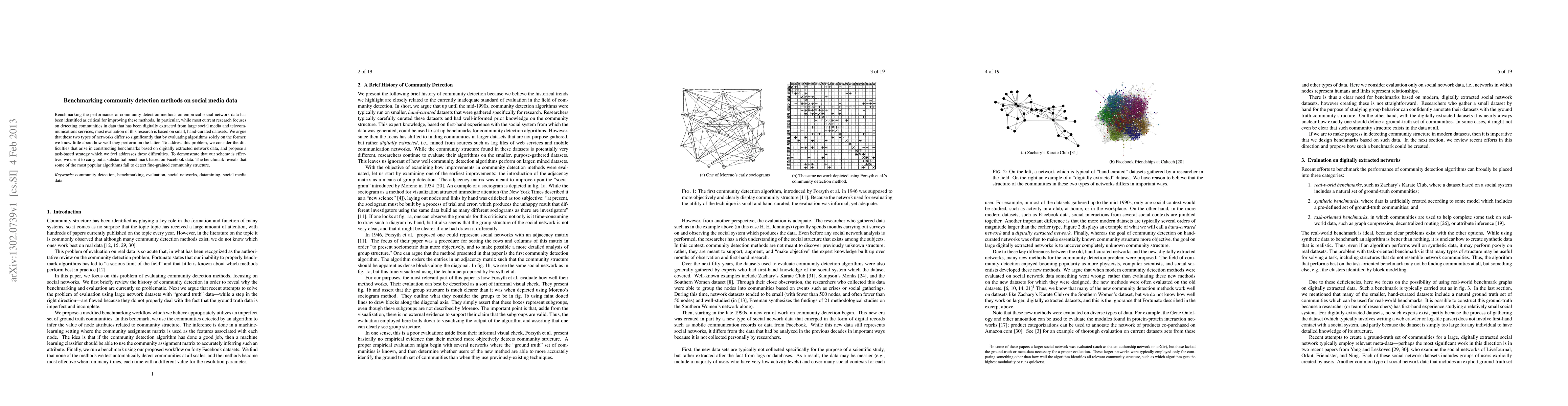 This paper benchmarks community detection methods on large-scale social media data, arguing that evaluations on small curated datasets are insufficient. It proposes a task-based strategy to address this issue and demonstrates its effectiveness using Facebook data, revealing shortcomings in popular algorithms for detecting fine-grained community structures.