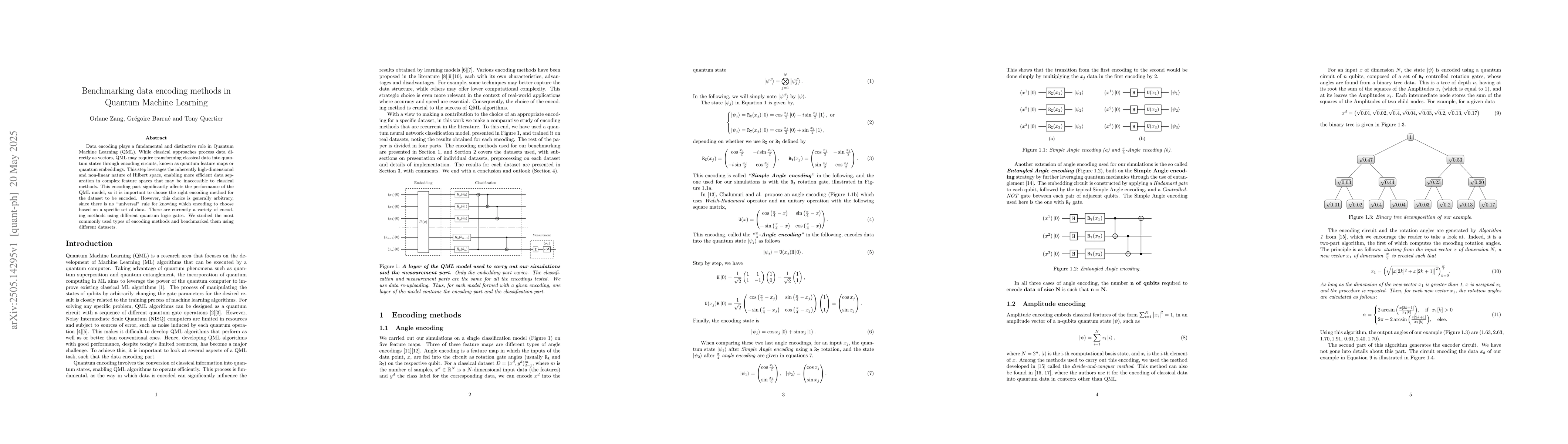 A comparative analysis of various quantum data encoding methods and their impact on QML model performance.