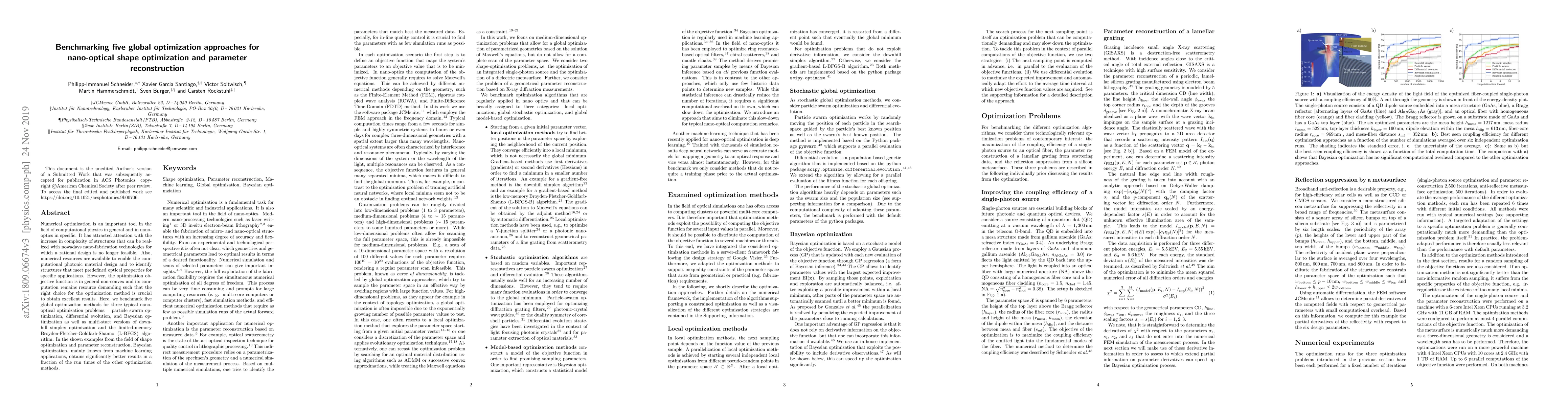 Researchers benchmarked five global optimization methods for nano-optical shape optimization and parameter reconstruction, finding that Bayesian optimization outperforms others in terms of results and efficiency.