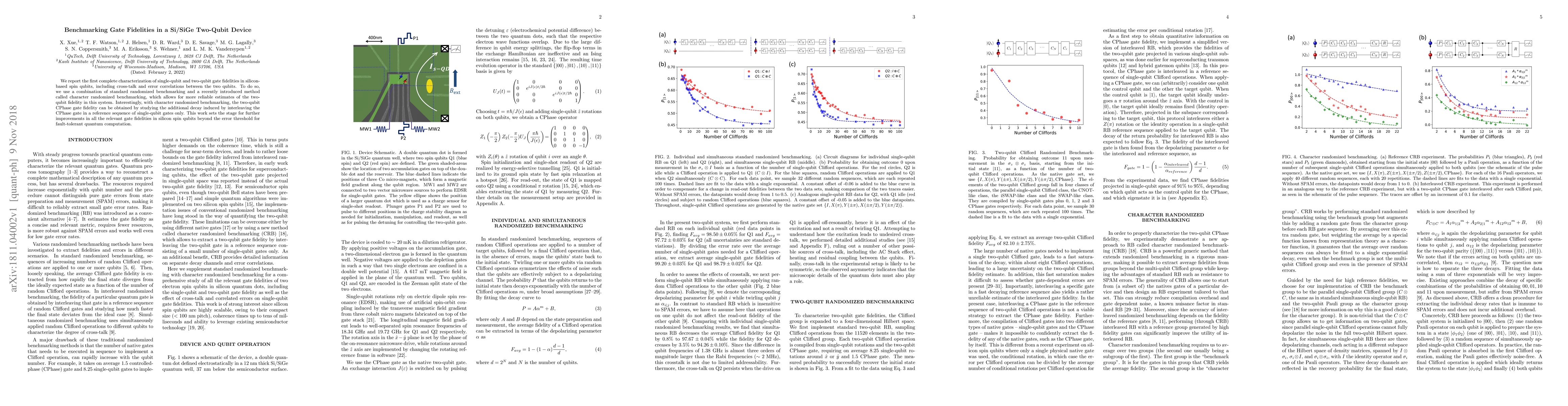 This paper benchmarks gate fidelities in silicon-based spin qubits using randomized and character randomized benchmarking, revealing cross-talk and error correlations. The study introduces a novel method to estimate two-qubit CPhase gate fidelity, paving the way for future enhancements in silicon spin qubits for quantum computing.