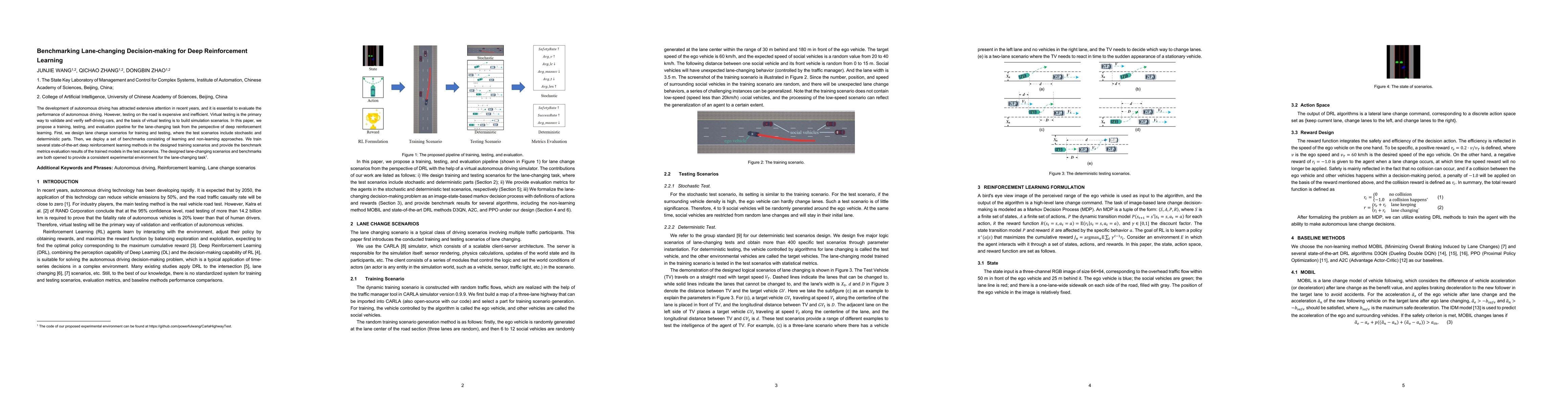 This paper proposes a comprehensive training, testing, and evaluation pipeline for deep reinforcement learning in autonomous driving's lane-changing task. It introduces designed scenarios and benchmarks to assess various learning and non-learning approaches, providing an open environment for consistent experimental evaluation.