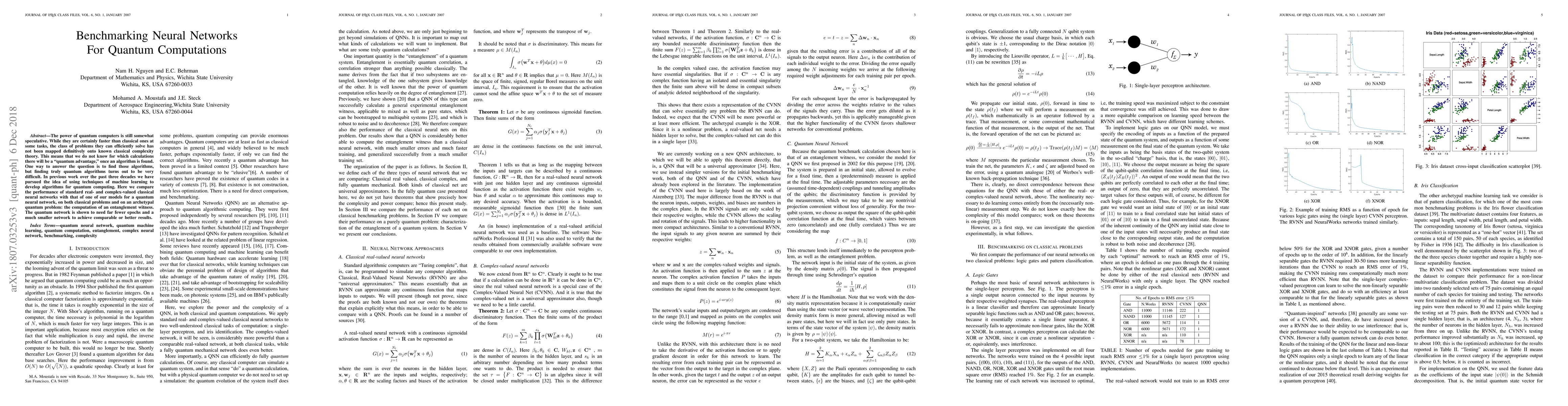 Researchers compared classical neural networks with a quantum neural network model on both classical problems and an archetypal quantum problem, finding that the quantum network achieved comparable or better results with significantly fewer epochs and a smaller network.