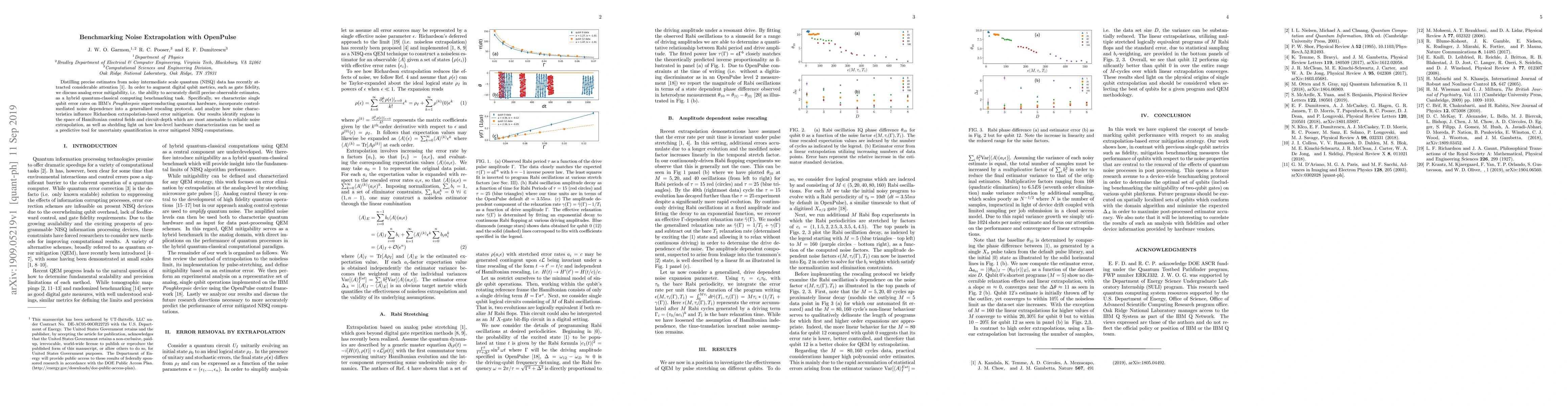 Distilling precise estimates from noisy intermediate scale quantum (NISQ) data has recently attracted considerable attention. In order to augment digital qubit metrics, such as gate fidelity, we discuss analog error mitigability, i.e. the ability to accurately distill precise observable estimates, as a hybrid quantum-classical computing benchmarking task. Specifically, we characterize single qubit error rates on IBM's Poughkeepsie superconducting quantum hardware, incorporate control-mediated noise dependence into a generalized rescaling protocol, and analyze how noise characteristics influence Richardson extrapolation-based error mitigation. Our results identify regions in the space of Hamiltonian control fields and circuit-depth which are most amenable to reliable noise extrapolation, as well as shedding light on how low-level hardware characterization can be used as a predictive tool for uncertainty quantification in error mitigated NISQ computations.