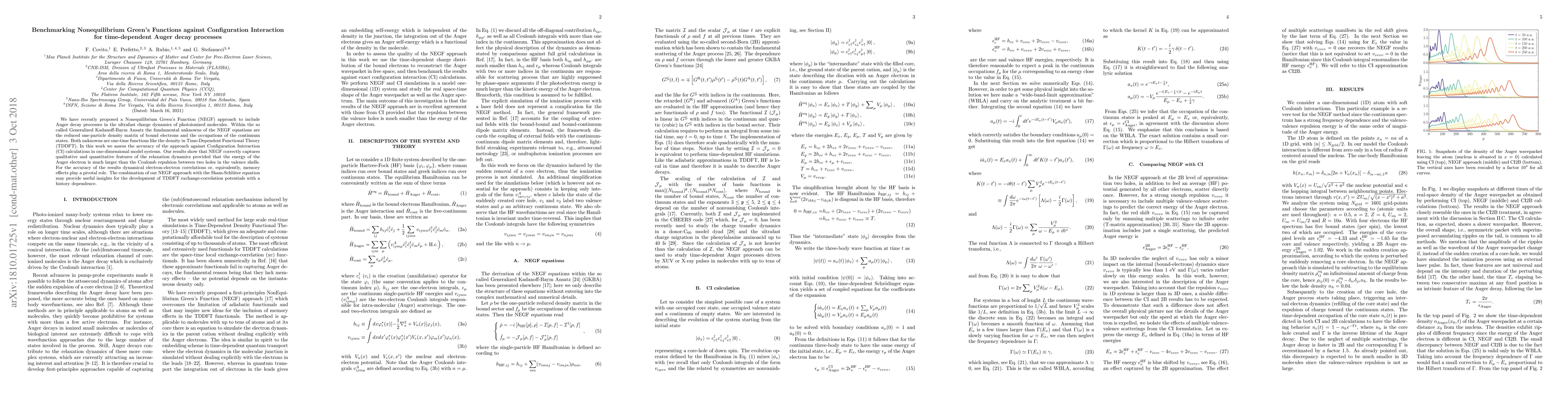 We have recently proposed a Nonequilibrium Green's Function (NEGF) approach to include Auger decay processes in the ultrafast charge dynamics of photoionized molecules. Within the so called Generalized Kadanoff-Baym Ansatz the fundamental unknowns of the NEGF equations are the reduced one-particle density matrix of bound electrons and the occupations of the continuum states. Both unknowns are one-time functions like the density in Time-Dependent Functional Theory (TDDFT). In this work we assess the accuracy of the approach against Configuration Interaction (CI) calculations in one-dimensional model systems. Our results show that NEGF correctly captures qualitative and quantitative features of the relaxation dynamics provided that the energy of the Auger electron is much larger than the Coulomb repulsion between two holes in the valence shells. For the accuracy of the results dynamical electron-electron correlations or, equivalently, memory effects play a pivotal role. The combination of our NEGF approach with the Sham-Schl\"uter equation may provide useful insights for the development of TDDFT exchange-correlation potentials with a history dependence.