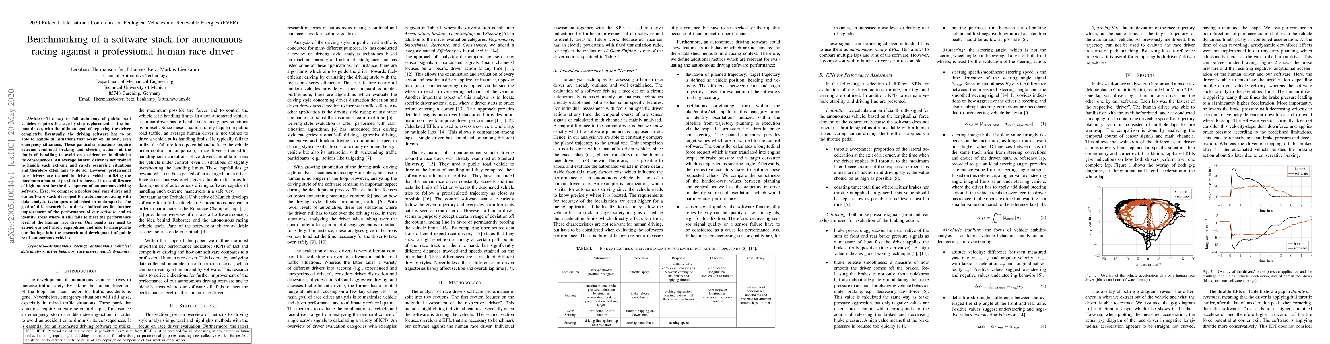 This paper benchmarks an autonomous racing software stack against a professional human race driver to identify areas for improvement in handling extreme driving situations. The comparison aims to enhance the software's performance and inform the broader development of autonomous driving systems.