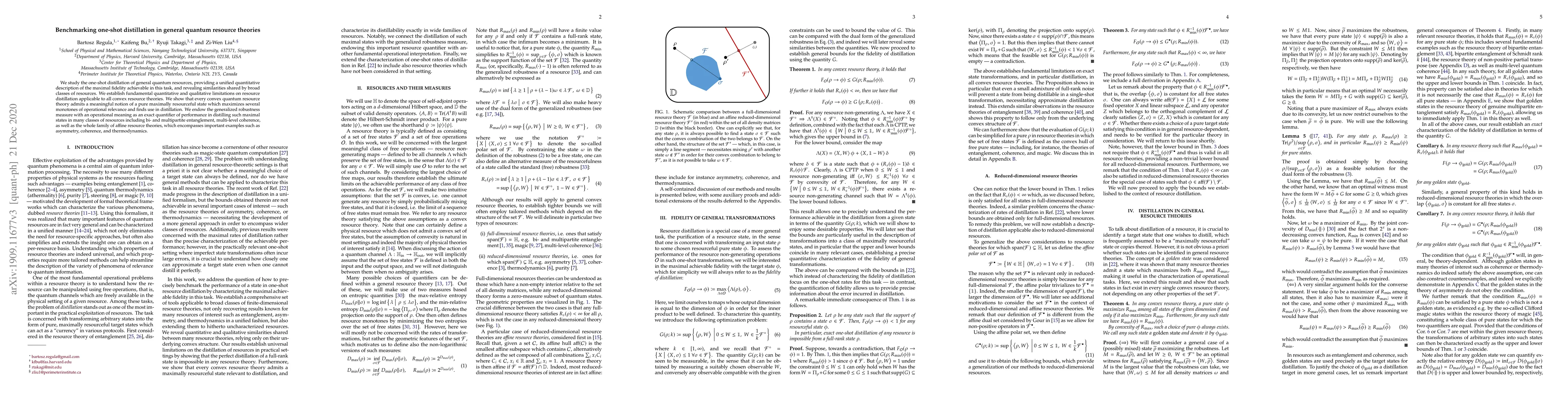 This paper benchmarks one-shot distillation in quantum resource theories, establishing quantitative and qualitative limits on resource distillation across various convex resource classes. It introduces a pure maximally resourceful state and defines an operational robustness measure that quantifies performance in distilling these states, applicable to entanglement, coherence, and affine resource theories.