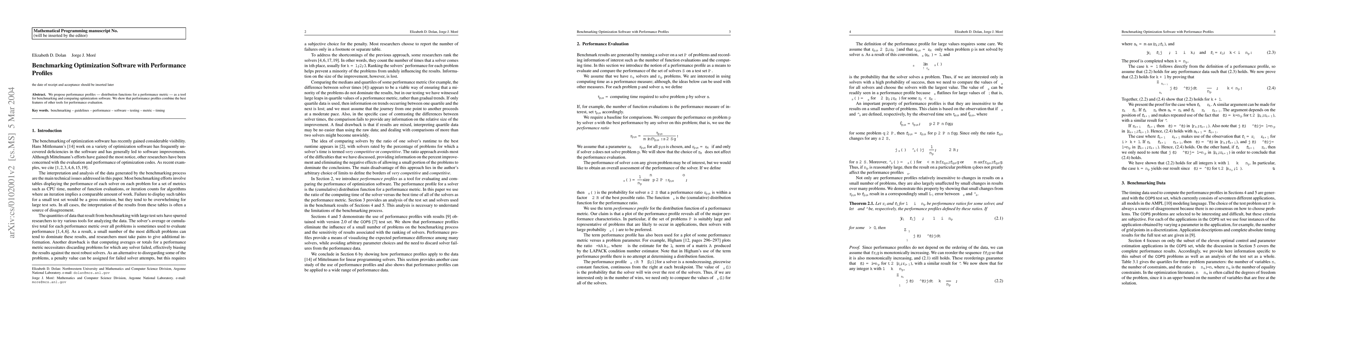 Researchers propose performance profiles as a tool for benchmarking optimization software, combining features of existing performance evaluation methods.