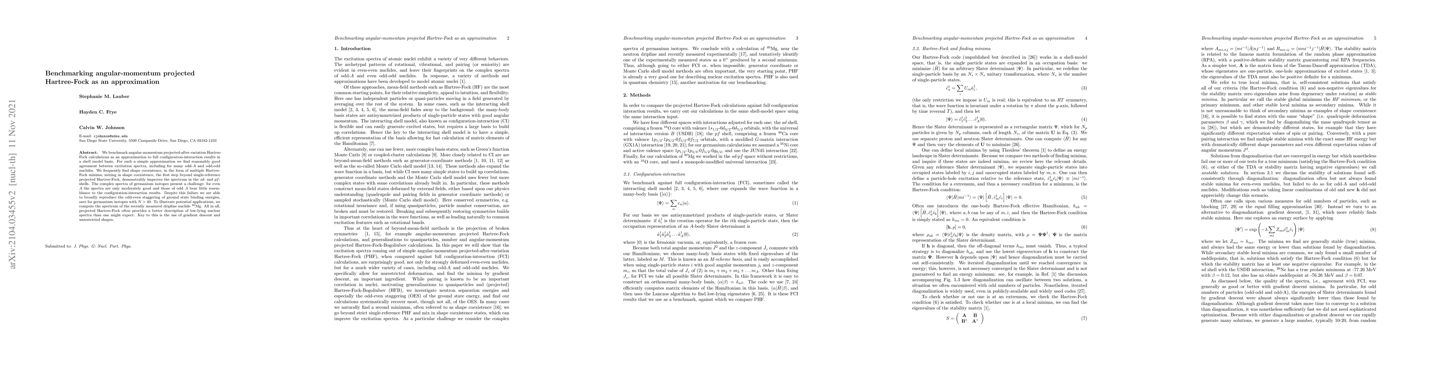 We benchmark angular-momentum projected{-after-variation} Hartree-Fock calculations as an approximation to full configuration-interaction results in a shell model basis. For such a simple approximation we find reasonably good agreement between excitation spectra, including for many odd-$A$ and odd-odd nuclides. We frequently find shape coexistence, in the form of multiple Hartree-Fock minima; {mixing in shape coexistence, the first step beyond single-reference projected Hartree-Fock}, demonstrably improves the spectrum in the $sd$- and $pf$-shells. The complex spectra of germanium isotopes present a challenge: for even $A$ the spectra are only moderately good and those of odd $A$ bear little resemblance to the configuration-interaction results. Despite this failure we are able to broadly reproduce the odd-even staggering of ground state binding energies, save for germanium isotopes with $N > 40$. To illustrate potential applications, we compute the spectrum of the recently measured dripline nuclide $^{40}$Mg. All in all, projected Hartree-Fock often provides a better description of low-lying nuclear spectra than one might expect. Key to this is the use of gradient descent and unrestricted shapes.