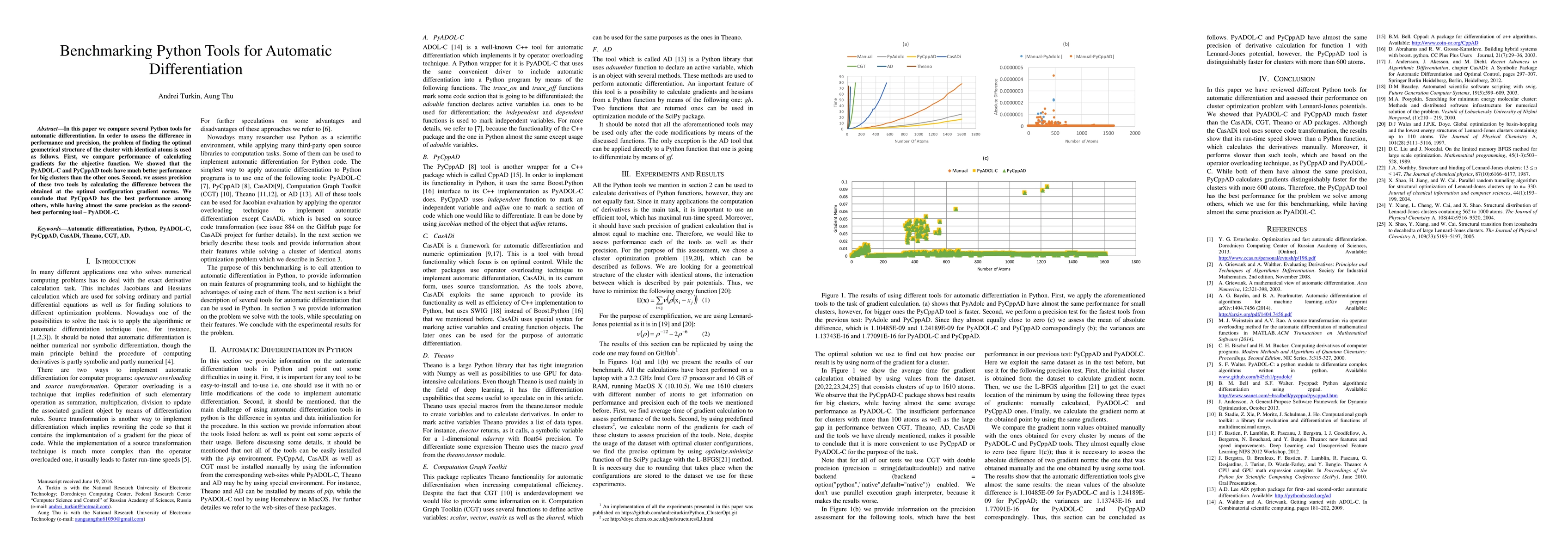 A cluster optimization problem with Lennard-Jones potentials was used to assess different Python tools for automatic differentiation.