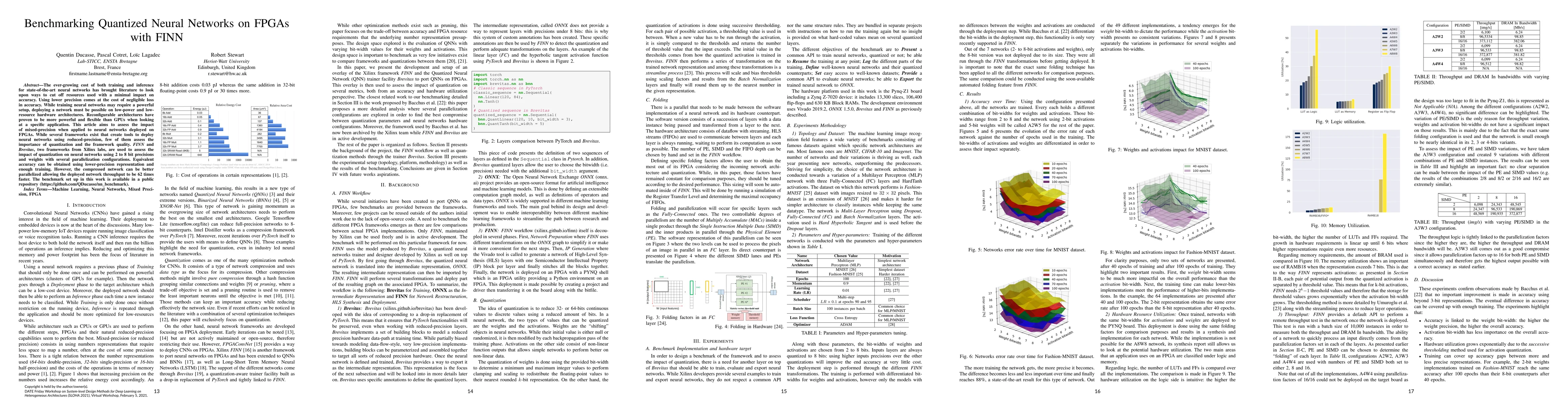 The ever-growing cost of both training and inference for state-of-the-art neural networks has brought literature to look upon ways to cut off resources used with a minimal impact on accuracy. Using lower precision comes at the cost of negligible loss in accuracy. While training neural networks may require a powerful setup, deploying a network must be possible on low-power and low-resource hardware architectures. Reconfigurable architectures have proven to be more powerful and flexible than GPUs when looking at a specific application. This article aims to assess the impact of mixed-precision when applied to neural networks deployed on FPGAs. While several frameworks exist that create tools to deploy neural networks using reduced-precision, few of them assess the importance of quantization and the framework quality. FINN and Brevitas, two frameworks from Xilinx labs, are used to assess the impact of quantization on neural networks using 2 to 8 bit precisions and weights with several parallelization configurations. Equivalent accuracy can be obtained using lower-precision representation and enough training. However, the compressed network can be better parallelized allowing the deployed network throughput to be 62 times faster. The benchmark set up in this work is available in a public repository (https://github.com/QDucasse/nn benchmark).