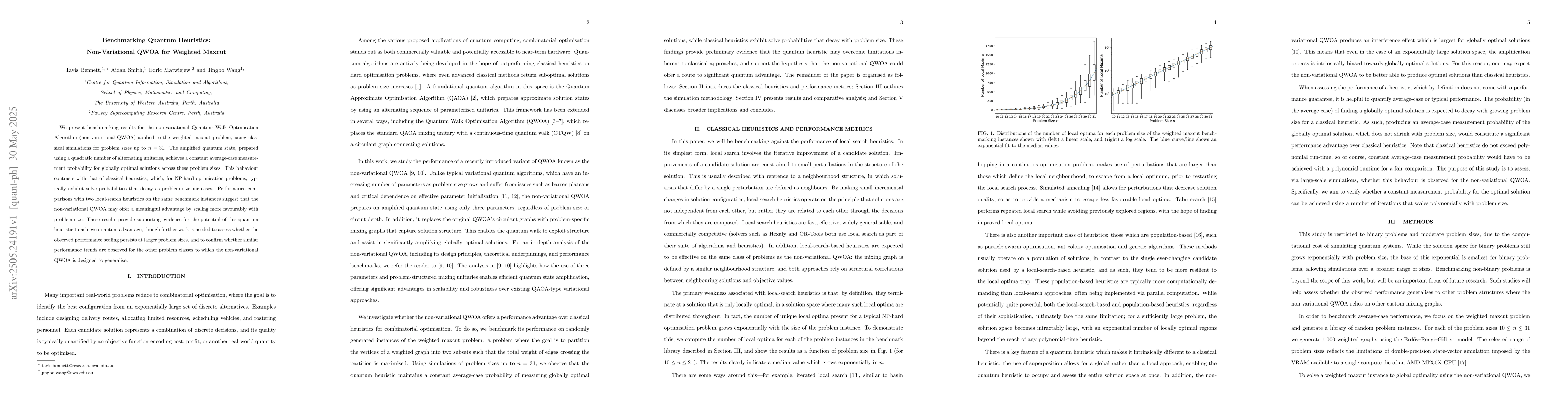 The research employed a combination of quantum walk simulations and optimization algorithms to explore the performance of the non-variational quantum walk (NVQW) heuristic.