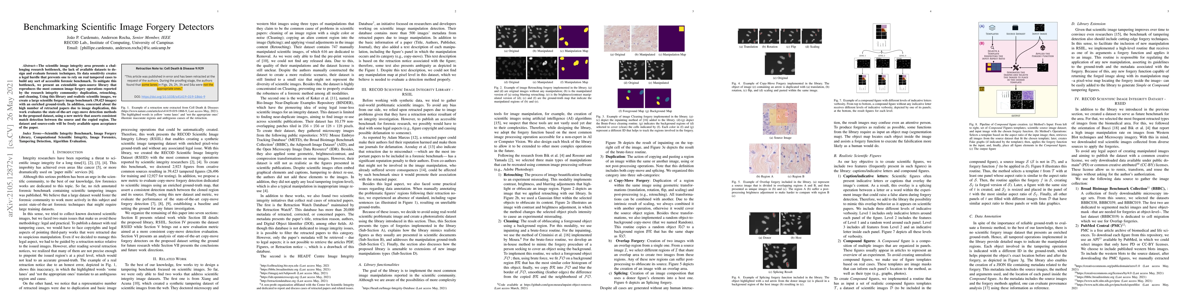 Researchers created a large dataset of 39,423 scientific images with known forgery operations to evaluate image forgery detection methods. This dataset will help improve forensic techniques in the scientific integrity area.