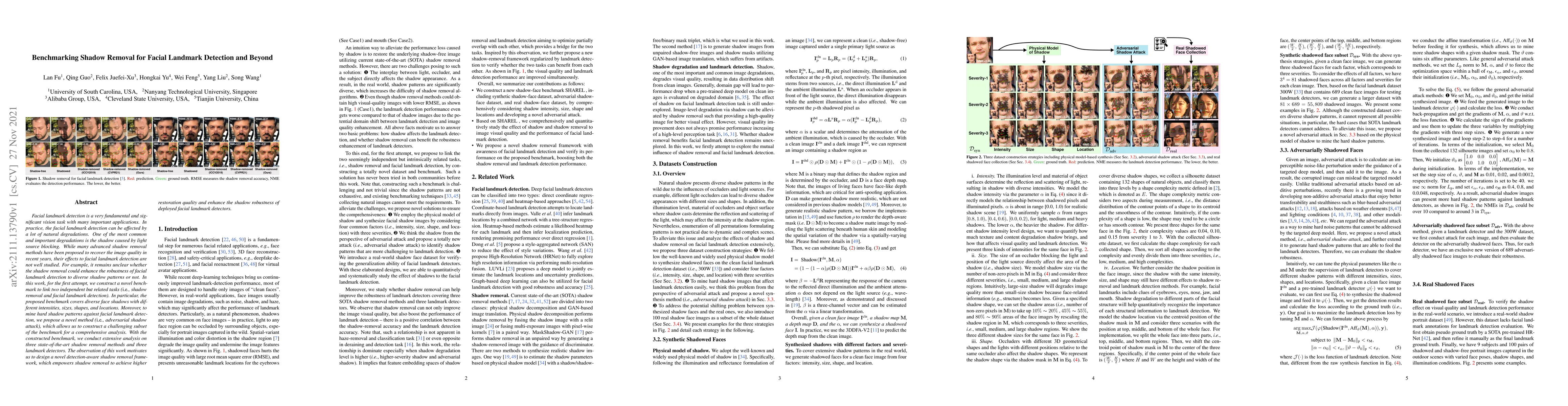 This paper constructs a benchmark linking shadow removal and facial landmark detection, analyzing the impact of shadow removal on landmark detection robustness. It proposes a novel adversarial shadow attack method to create challenging shadow patterns, and develops a detection-aware shadow removal framework to improve both restoration quality and landmark detection robustness.