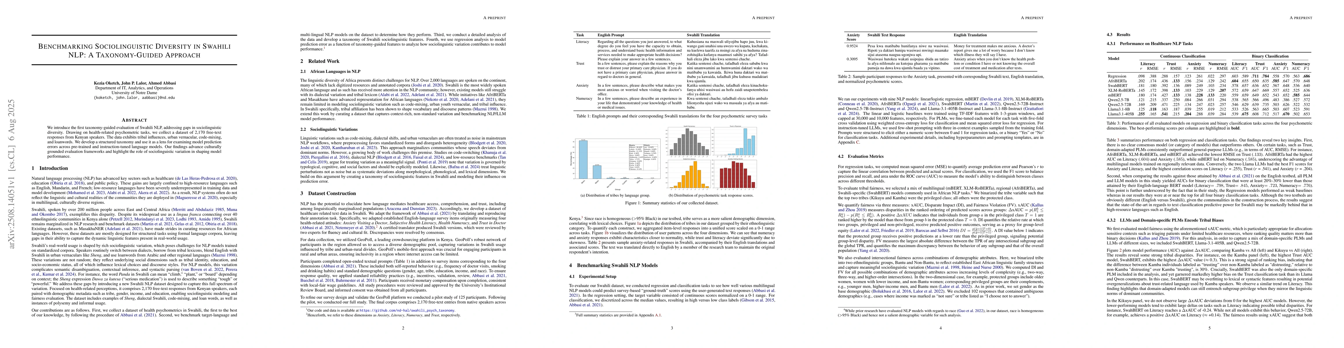 We introduce the first taxonomy-guided evaluation of Swahili NLP, addressing gaps in sociolinguistic diversity. Drawing on health-related psychometric tasks, we collect a dataset of 2,170 free-text responses from Kenyan speakers. The data exhibits tribal influences, urban vernacular, code-mixing, and loanwords. We develop a structured taxonomy and use it as a lens for examining model prediction errors across pre-trained and instruction-tuned language models. Our findings advance culturally grounded evaluation frameworks and highlight the role of sociolinguistic variation in shaping model performance.