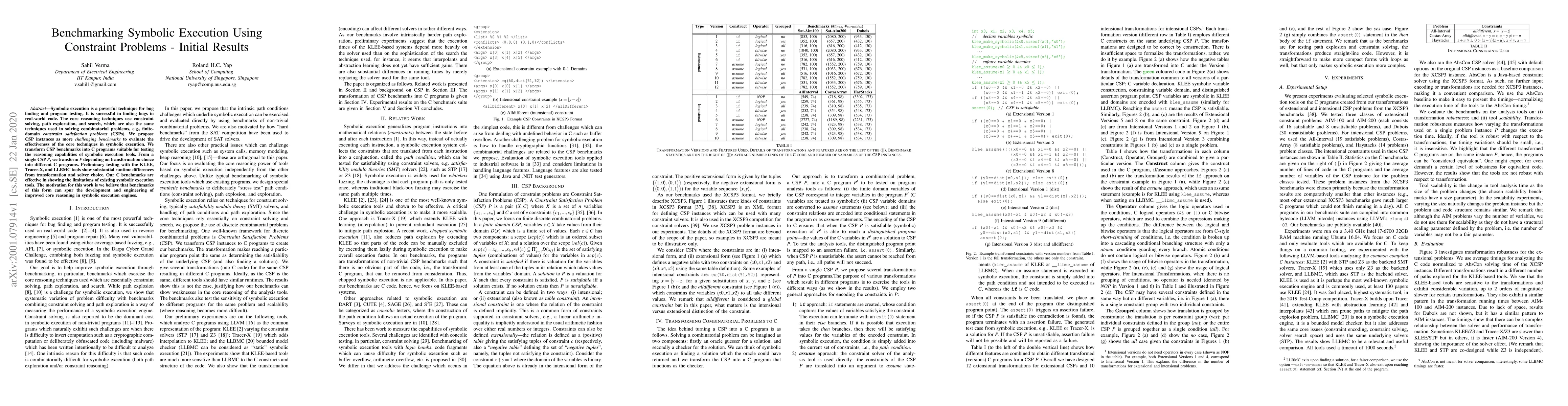 This paper proposes using constraint satisfaction problems (CSPs) as benchmarks to evaluate symbolic execution tools, transforming CSPs into C programs to test their reasoning capabilities. Preliminary results indicate significant runtime variations based on the transformation and solver choices, highlighting the limitations of current tools and suggesting that such benchmarks could drive improvements in symbolic execution techniques.
