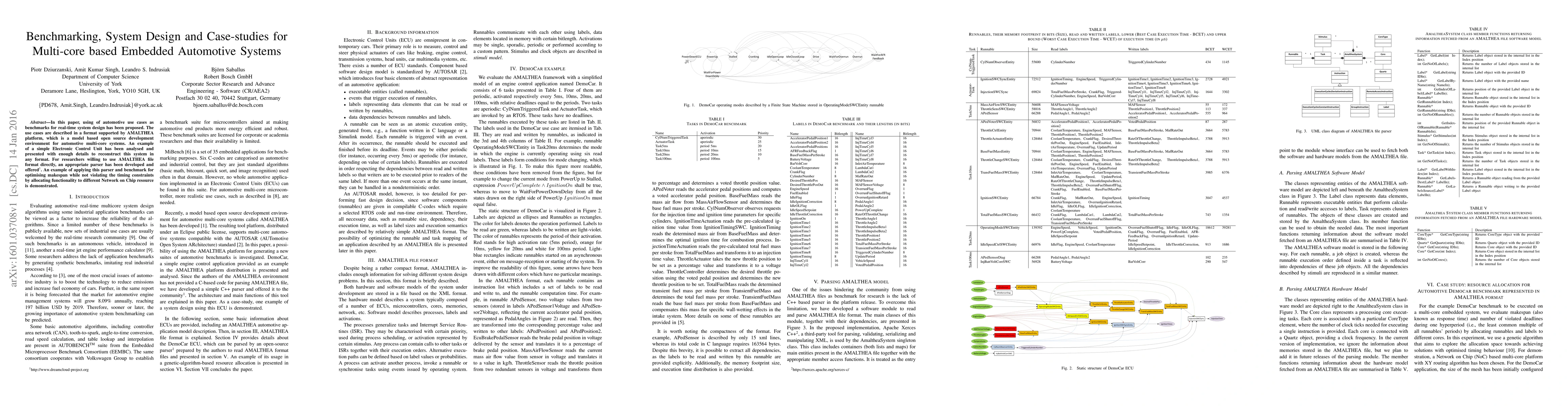 This paper proposes using automotive use cases as benchmarks for designing real-time multi-core embedded systems, utilizing the AMALTHEA platform. It includes a detailed analysis of an Electronic Control Unit and presents a parser for AMALTHEA files, demonstrating its application in optimizing system makespan while adhering to timing constraints.