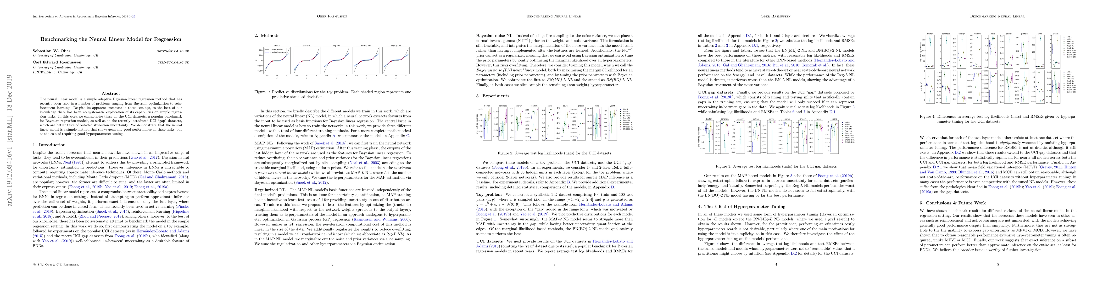 The neural linear model is a simple adaptive Bayesian linear regression method that has recently been used in a number of problems ranging from Bayesian optimization to reinforcement learning. Despite its apparent successes in these settings, to the best of our knowledge there has been no systematic exploration of its capabilities on simple regression tasks. In this work we characterize these on the UCI datasets, a popular benchmark for Bayesian regression models, as well as on the recently introduced UCI "gap" datasets, which are better tests of out-of-distribution uncertainty. We demonstrate that the neural linear model is a simple method that shows generally good performance on these tasks, but at the cost of requiring good hyperparameter tuning.