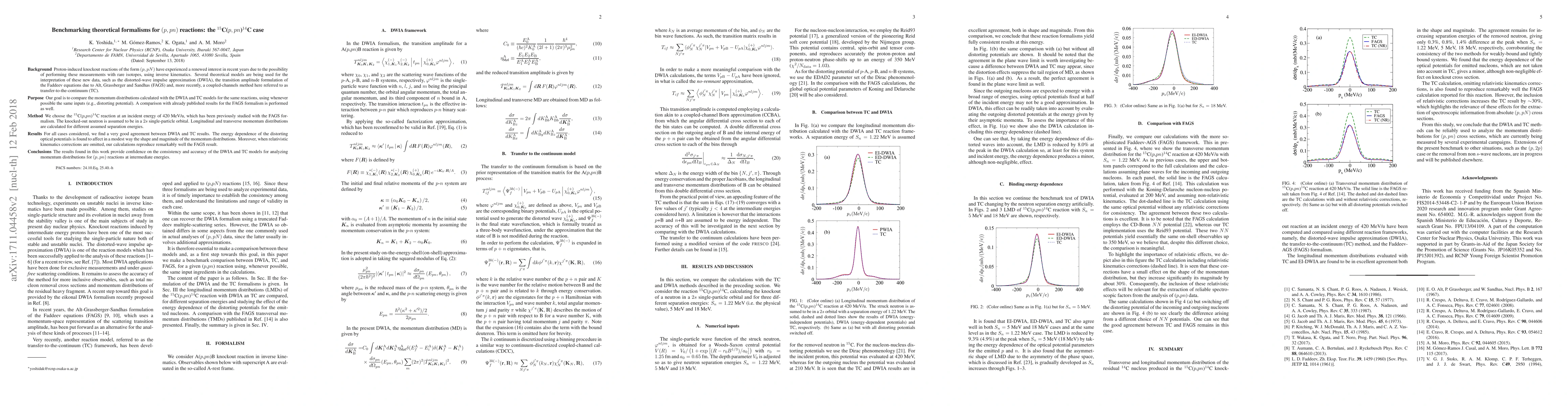 The study compares momentum distributions calculated with DWIA and TC models for the same $(p,pn)$ reactions, using the same inputs like distorting potentials. It also compares with previously published results for the FAGS formalism.