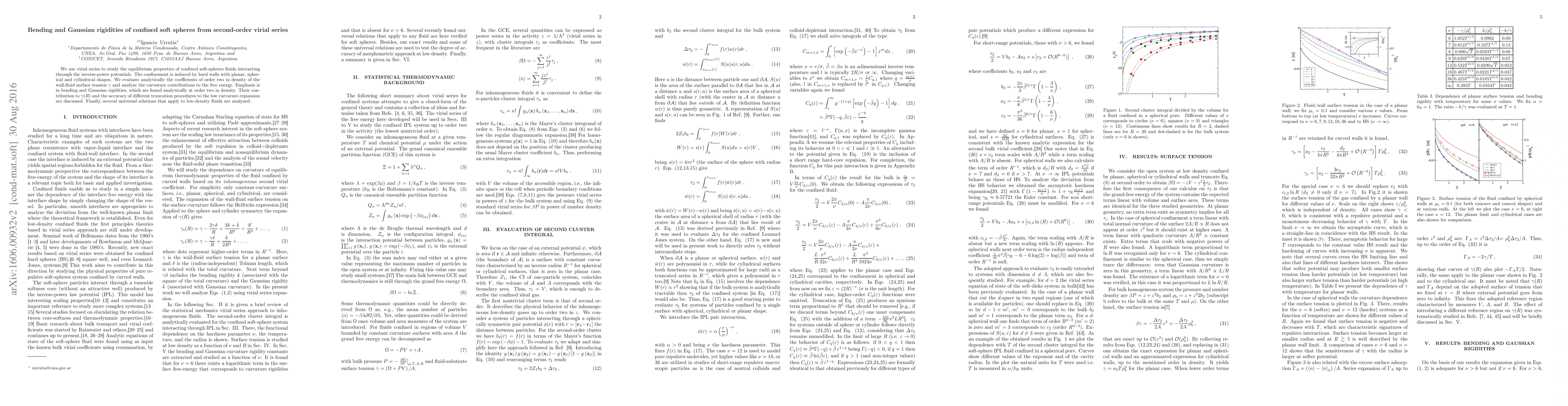 This paper uses virial series to analyze the equilibrium properties of confined soft-sphere fluids, focusing on the bending and Gaussian rigidities under different confinement geometries. Analytical expressions for the second-order density coefficients of wall-fluid surface tension are derived, and the study discusses the accuracy of various truncation methods in low curvature expansions.