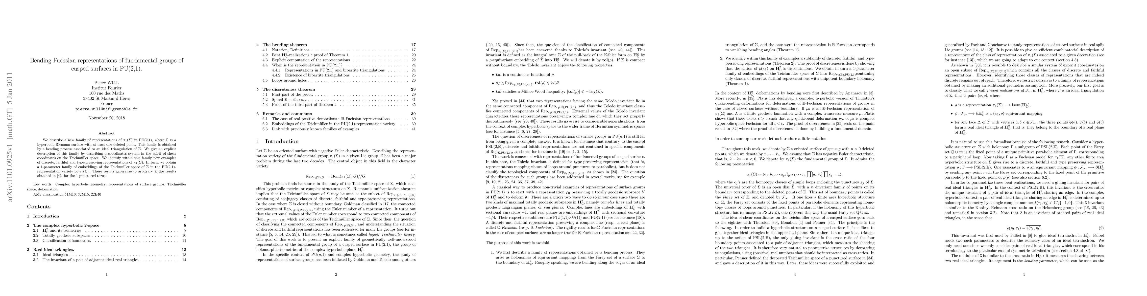 The research employs a bending process associated with an ideal triangulation of a hyperbolic Riemann surface with at least one deleted point, resulting in a family of representations of π₁(Σ) in PU(2,1).