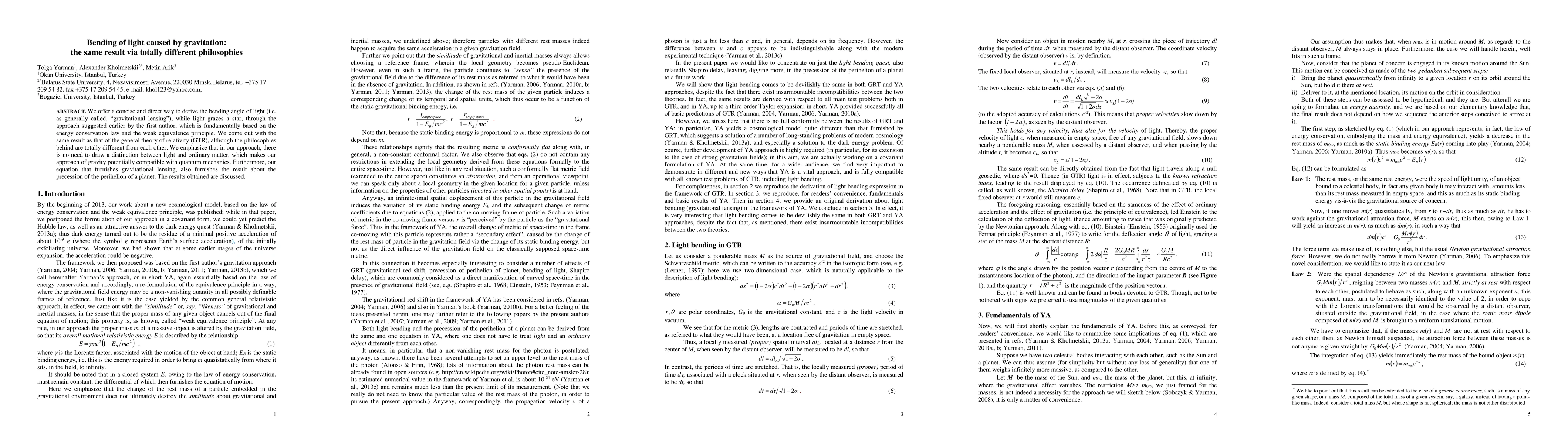 The paper presents a novel derivation of gravitational lensing and the precession of planetary perihelia using energy conservation and the weak equivalence principle, contrasting with general relativity (GTR) philosophy.
