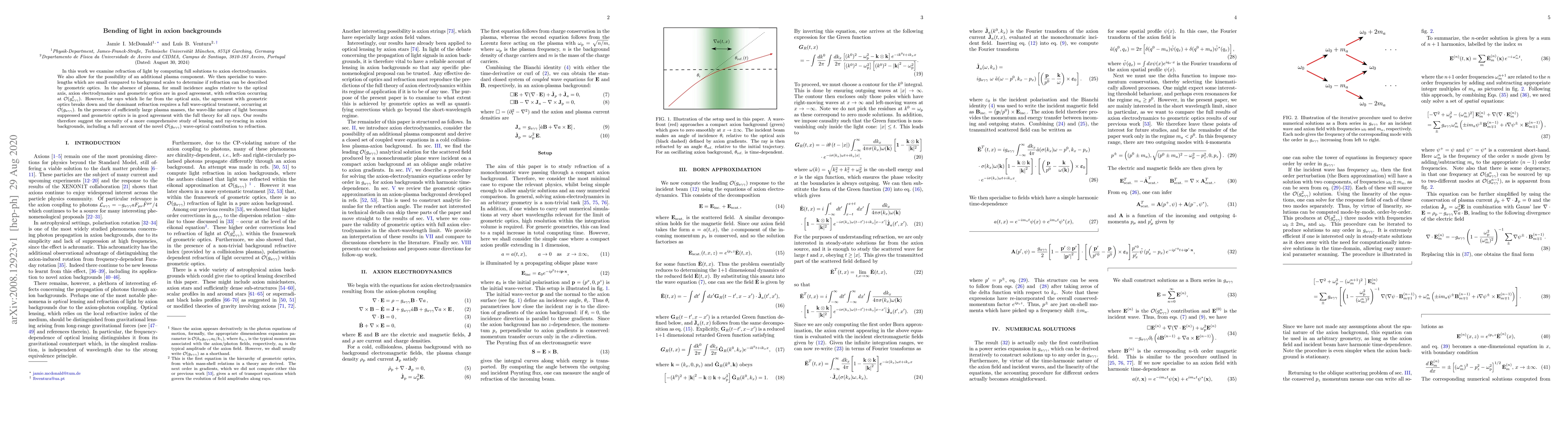 Researchers studied how light bends in axion backgrounds and found that for small angles, refraction can be described by geometric optics, but at larger angles, a full wave-optical treatment is needed to accurately predict the bending of light. The study highlights the importance of considering both geometric and wave-optical effects in axion backgrounds.
