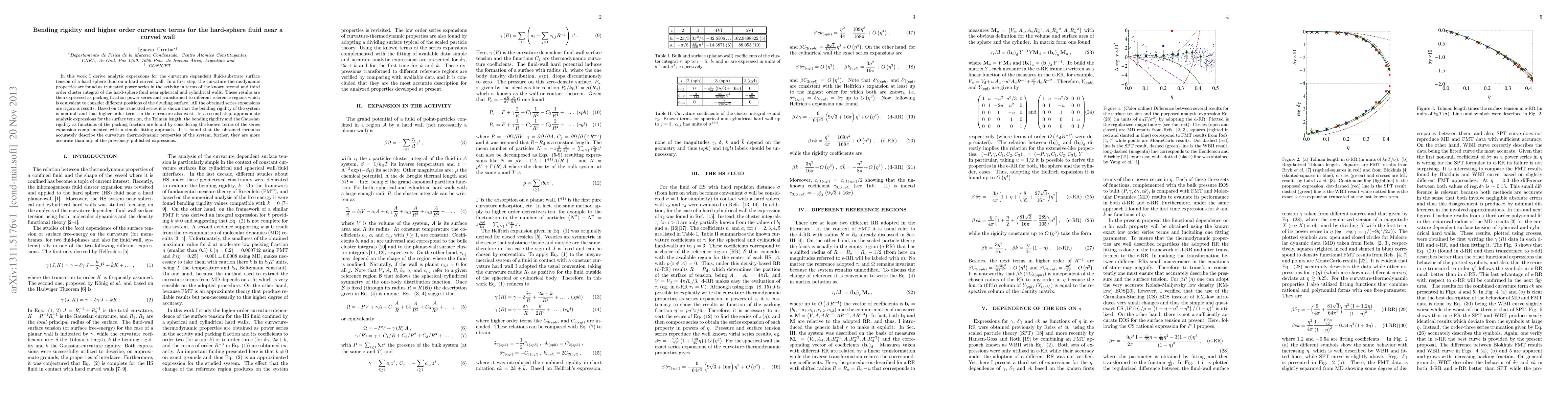Researchers derived analytic expressions for the fluid-substrate surface tension of a hard-sphere fluid near a curved wall, finding that bending rigidity and higher-order curvature terms exist.