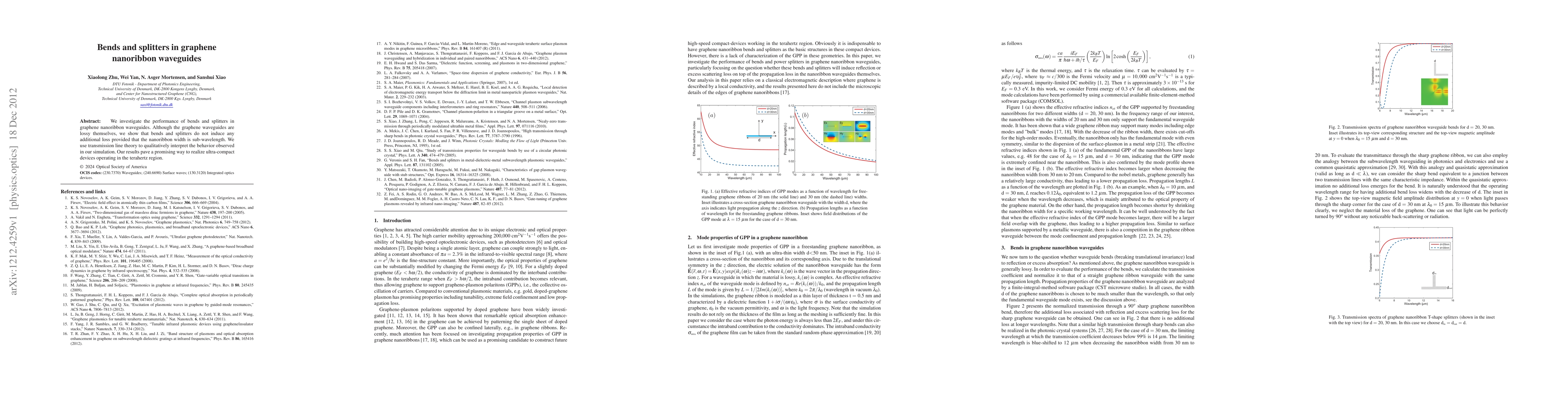 This paper investigates the performance of bends and splitters in graphene nanoribbon waveguides, demonstrating that they do not induce additional loss if the nanoribbon width is sub-wavelength. The findings, interpreted using transmission line theory, suggest potential for ultra-compact terahertz devices.