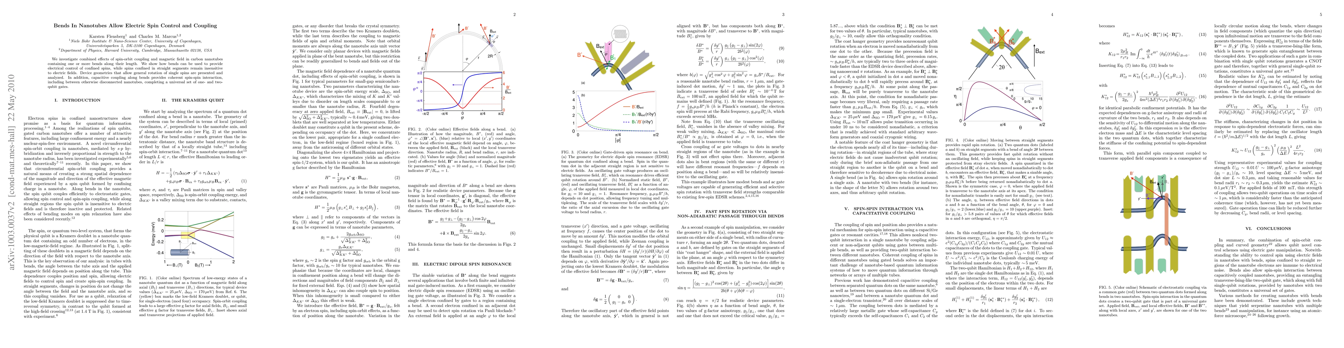 This paper explores how bends in carbon nanotubes enable electric control of spin-orbit coupling and facilitate spin-spin interactions, providing a pathway for one- and two-qubit quantum gate operations through capacitive coupling.