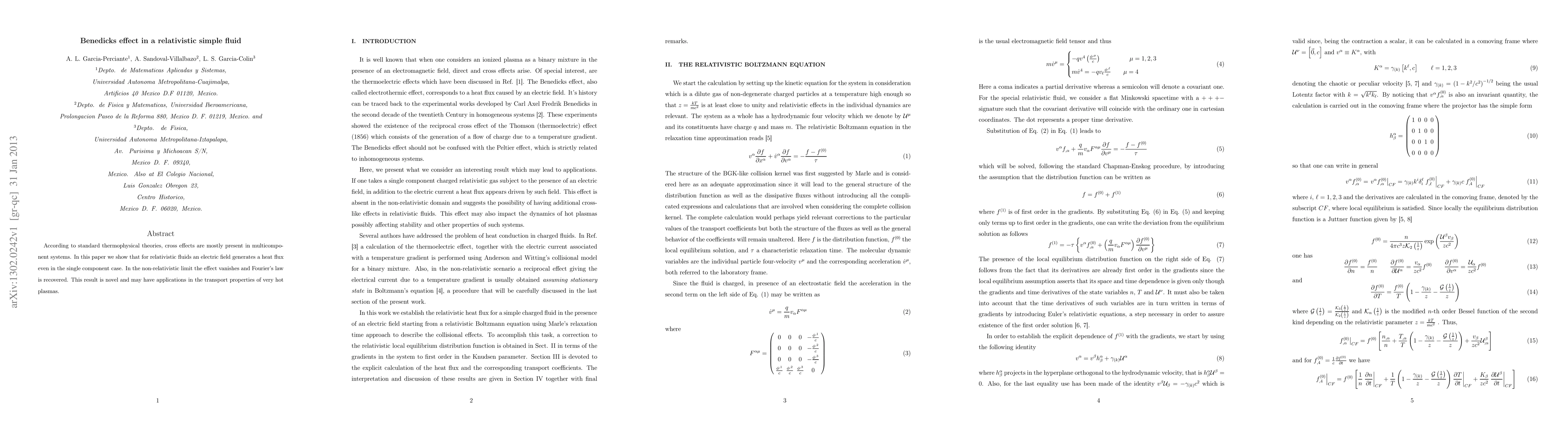 According to standard thermophysical theories, cross effects are mostly present in multicomponent systems. In this paper we show that for relativistic fluids an electric field generates a heat flux even in the single component case. In the non-relativistic limit the effect vanishes and Fourier's law is recovered. This result is novel and may have applications in the transport properties of very hot plasmas.