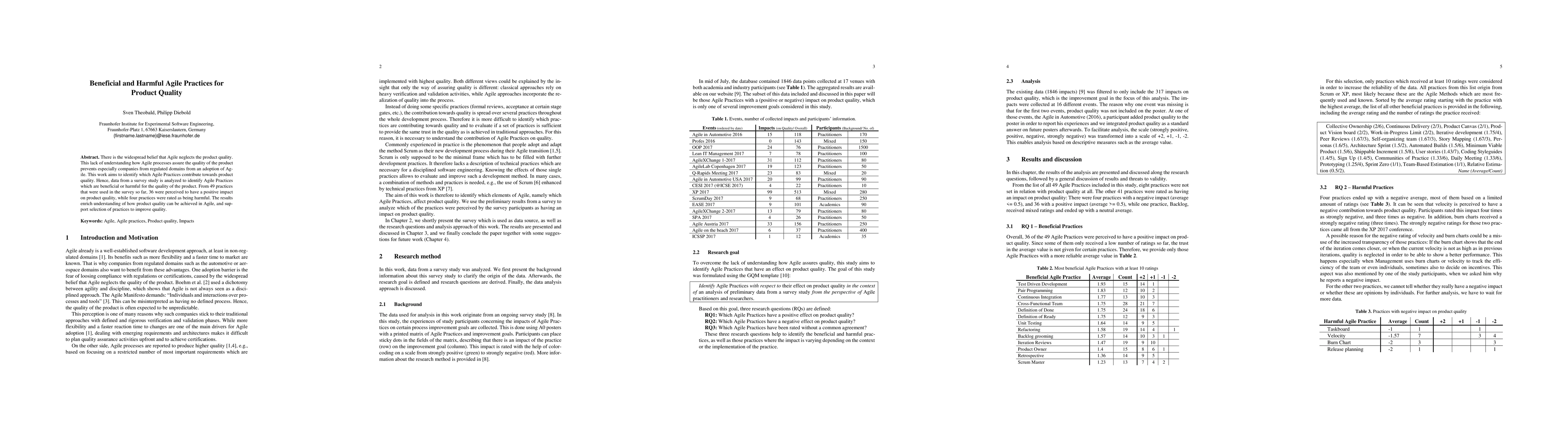 This study investigates Agile practices' impact on product quality, revealing that 36 out of 49 surveyed practices are beneficial, while four are harmful, thereby clarifying misconceptions about Agile's effect on quality and aiding in practice selection for enhanced product quality.