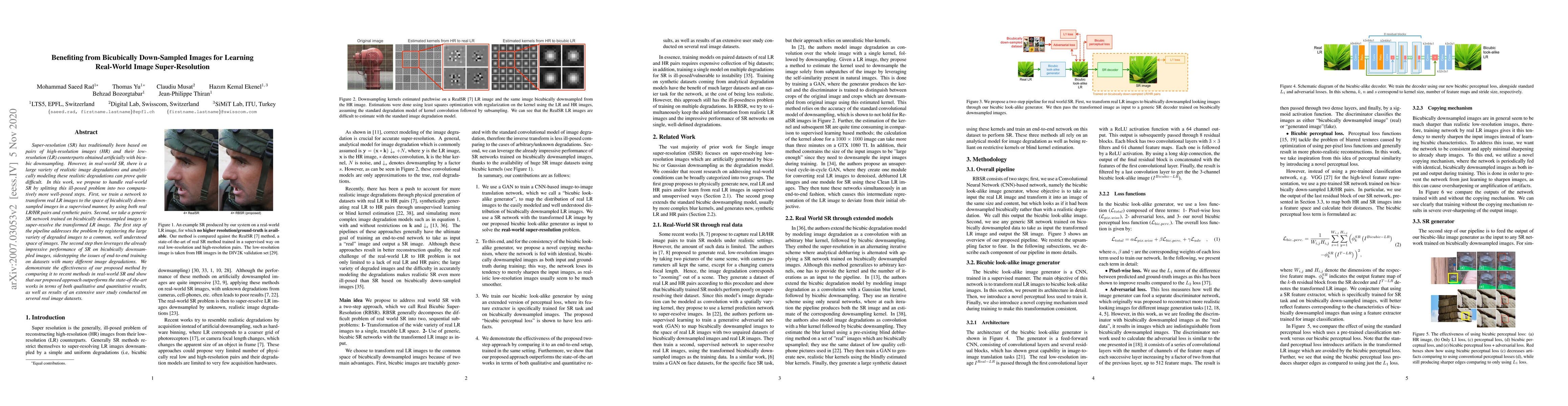 Super-resolution (SR) has traditionally been based on pairs of high-resolution images (HR) and their low-resolution (LR) counterparts obtained artificially with bicubic downsampling. However, in real-world SR, there is a large variety of realistic image degradations and analytically modeling these realistic degradations can prove quite difficult. In this work, we propose to handle real-world SR by splitting this ill-posed problem into two comparatively more well-posed steps. First, we train a network to transform real LR images to the space of bicubically downsampled images in a supervised manner, by using both real LR/HR pairs and synthetic pairs. Second, we take a generic SR network trained on bicubically downsampled images to super-resolve the transformed LR image. The first step of the pipeline addresses the problem by registering the large variety of degraded images to a common, well understood space of images. The second step then leverages the already impressive performance of SR on bicubically downsampled images, sidestepping the issues of end-to-end training on datasets with many different image degradations. We demonstrate the effectiveness of our proposed method by comparing it to recent methods in real-world SR and show that our proposed approach outperforms the state-of-the-art works in terms of both qualitative and quantitative results, as well as results of an extensive user study conducted on several real image datasets.