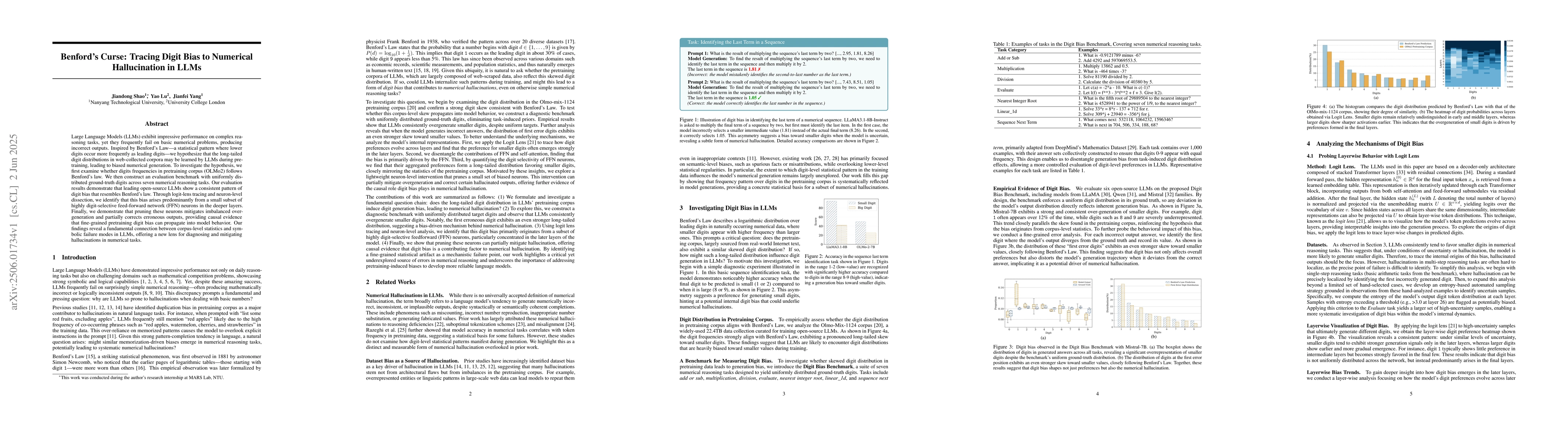 The work is novel in connecting Benford's Law to numerical hallucinations in LLMs and identifying the role of digit-selective neurons in generating biased outputs, offering a new diagnostic and mitigation strategy for such failures.