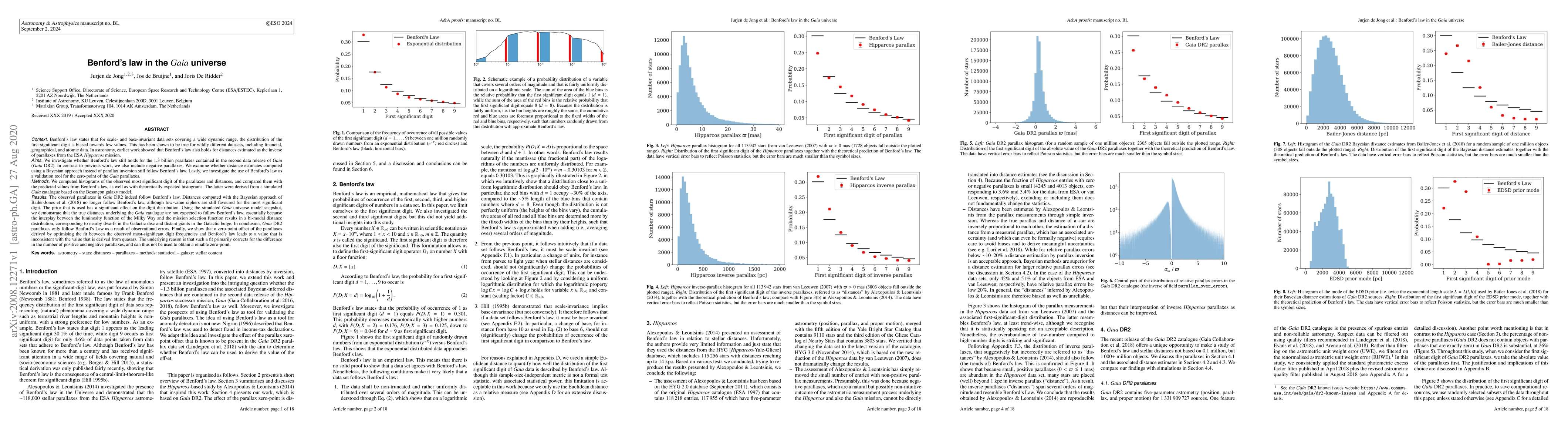Benfords law states that for scale- and base-invariant data sets covering a wide dynamic range, the distribution of the first significant digit is biased towards low values. This has been shown to be true for wildly different datasets, including financial, geographical, and atomic data. In astronomy, earlier work showed that Benfords law also holds for distances estimated as the inverse of parallaxes from the ESA Hipparcos mission. We investigate whether Benfords law still holds for the 1.3 billion parallaxes contained in the second data release of Gaia (Gaia DR2). In contrast to previous work, we also include negative parallaxes. We examine whether distance estimates computed using a Bayesian approach instead of parallax inversion still follow Benfords law. Lastly, we investigate the use of Benfords law as a validation tool for the zero-point of the Gaia parallaxes.