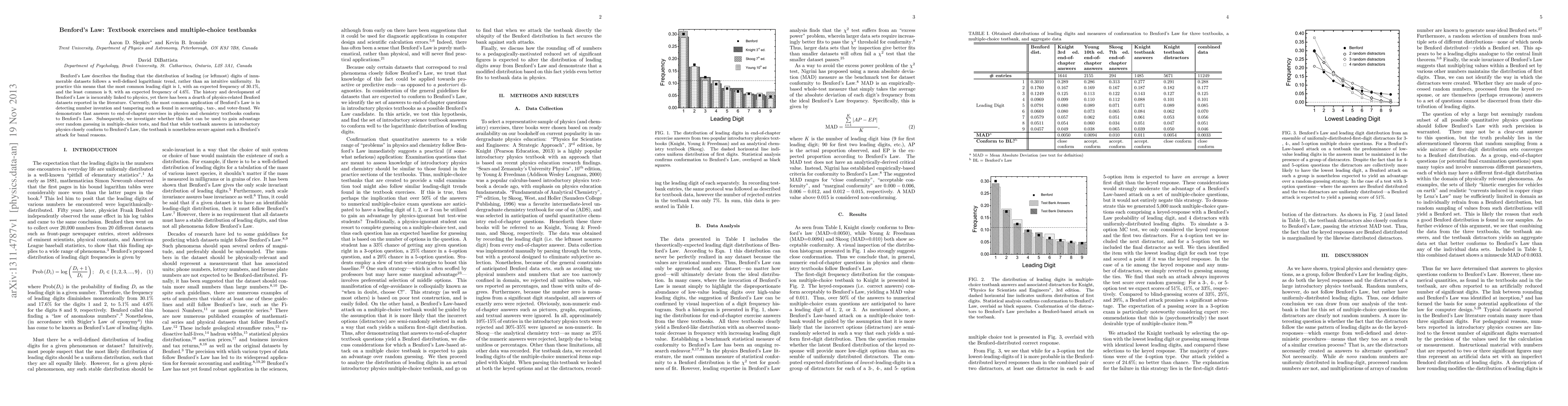 This paper explores the application of Benford's Law to physics and chemistry textbook exercises, finding that their answers follow the logarithmic distribution. It also examines whether this pattern can aid in multiple-choice test guessing, concluding that while introductory physics testbank answers conform to Benford's Law, it does not compromise the test's integrity.