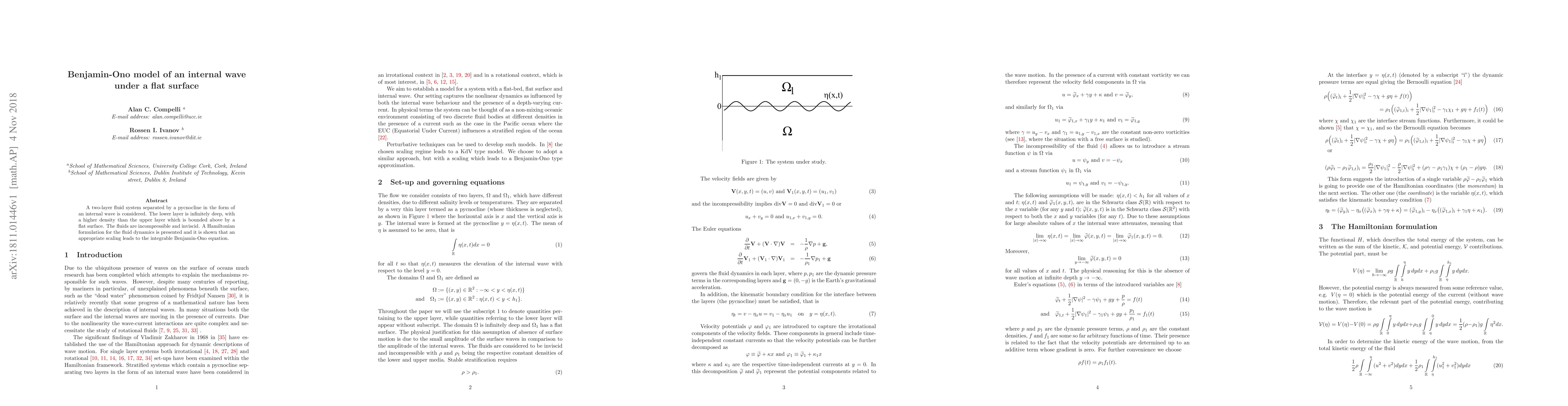 A two-layer fluid system separated by a pycnocline in the form of an internal wave is considered. The lower layer is infinitely deep, with a higher density than the upper layer which is bounded above by a flat surface. The fluids are incompressible and inviscid. A Hamiltonian formulation for the fluid dynamics is presented and it is shown that an appropriate scaling leads to the integrable Benjamin-Ono equation.