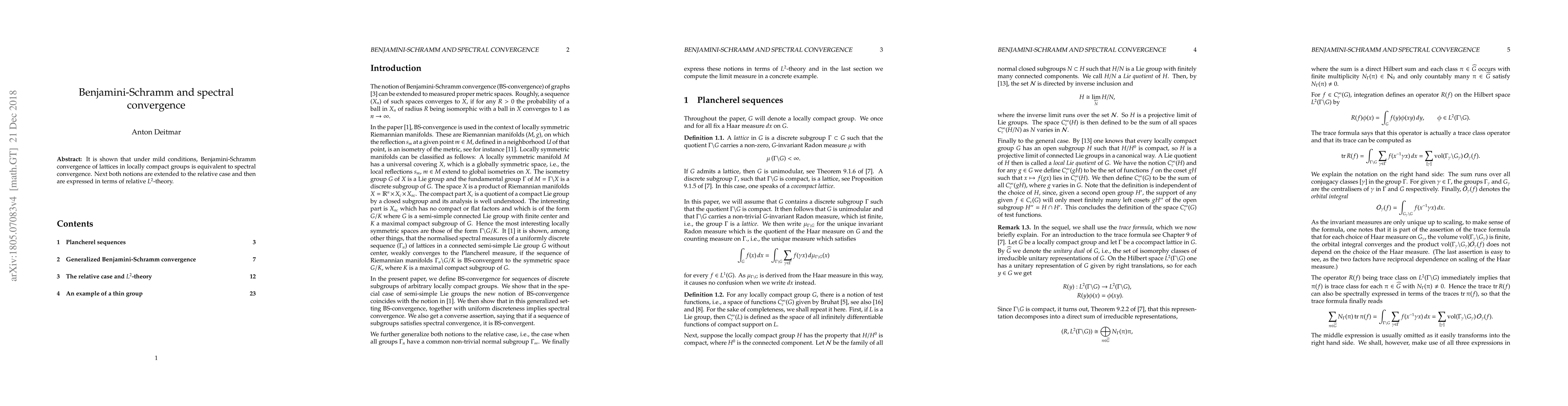 This paper demonstrates that Benjamini-Schramm convergence of lattices in locally compact groups is equivalent to spectral convergence under mild conditions. It further extends both concepts to the relative case and interprets them using relative L2-theory.