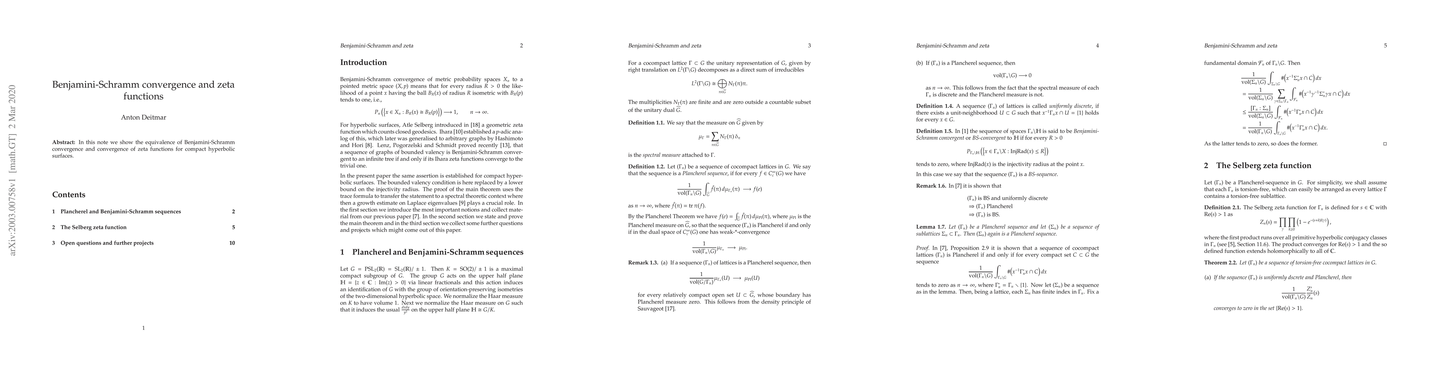 The research establishes equivalence between Benjamini-Schramm convergence and the convergence of zeta functions for compact hyperbolic surfaces.
