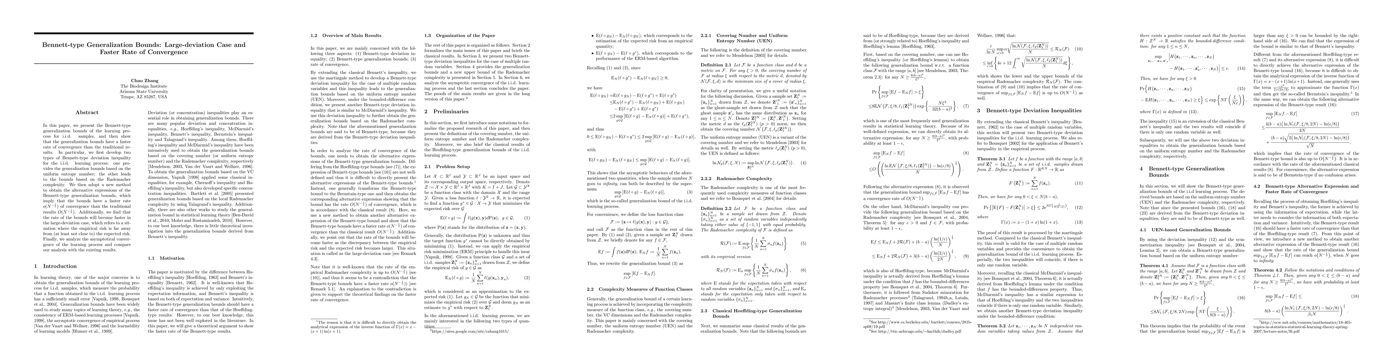 This paper introduces Bennett-type generalization bounds for i.i.d. learning processes, demonstrating faster convergence rates of o(N^{-1/2}) compared to traditional O(N^{-1/2}). It also shows enhanced performance in large-deviation scenarios where empirical risk deviates significantly from expected risk.