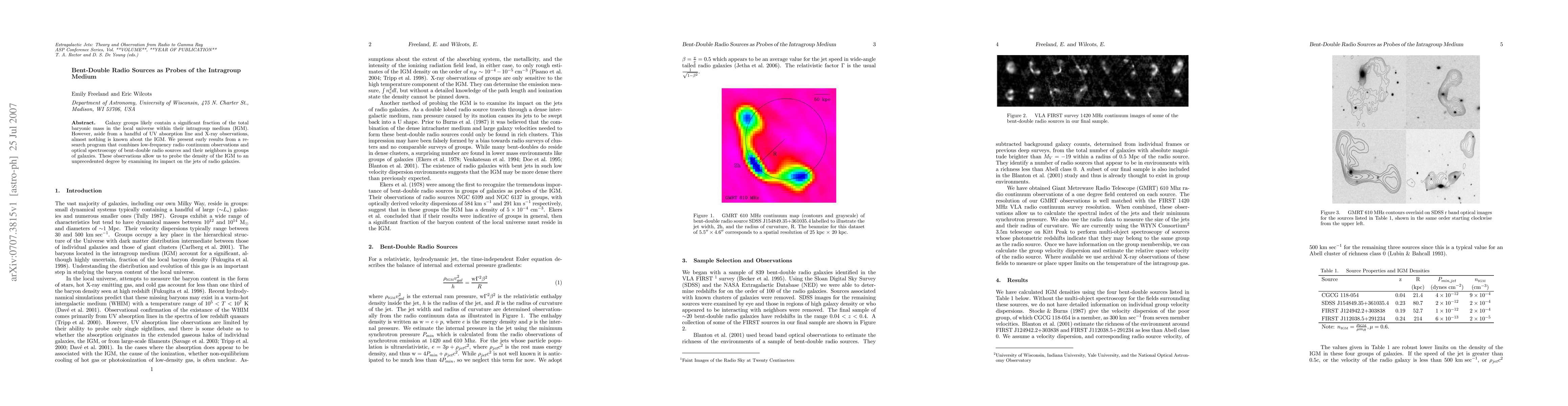 This paper explores the use of bent-double radio sources to study the intragroup medium (IGM) in galaxy groups, utilizing low-frequency radio observations and optical spectroscopy to investigate the density and properties of the IGM, providing a new method to probe this largely unknown component of the local universe.