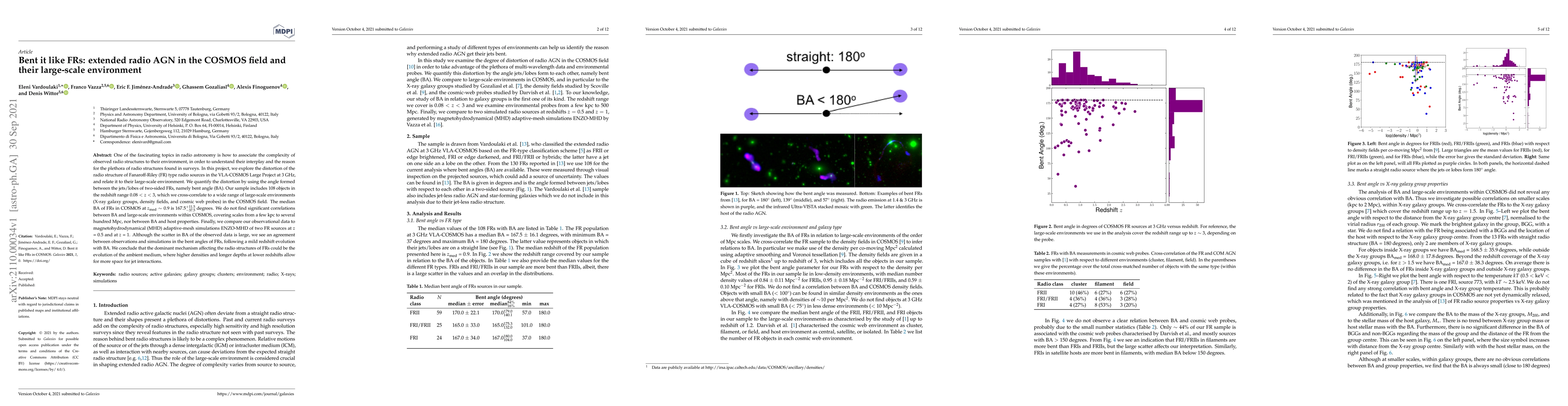 This paper investigates the distortion of Fanaroff-Riley (FR) type radio sources in the COSMOS field, quantifying it using the "bent angle" between jets/lobes. Despite a large sample and extensive environmental correlations, no significant relationships between bent angles and large-scale environments were found, suggesting that the evolution of the ambient medium may be the primary factor influencing these radio structures.