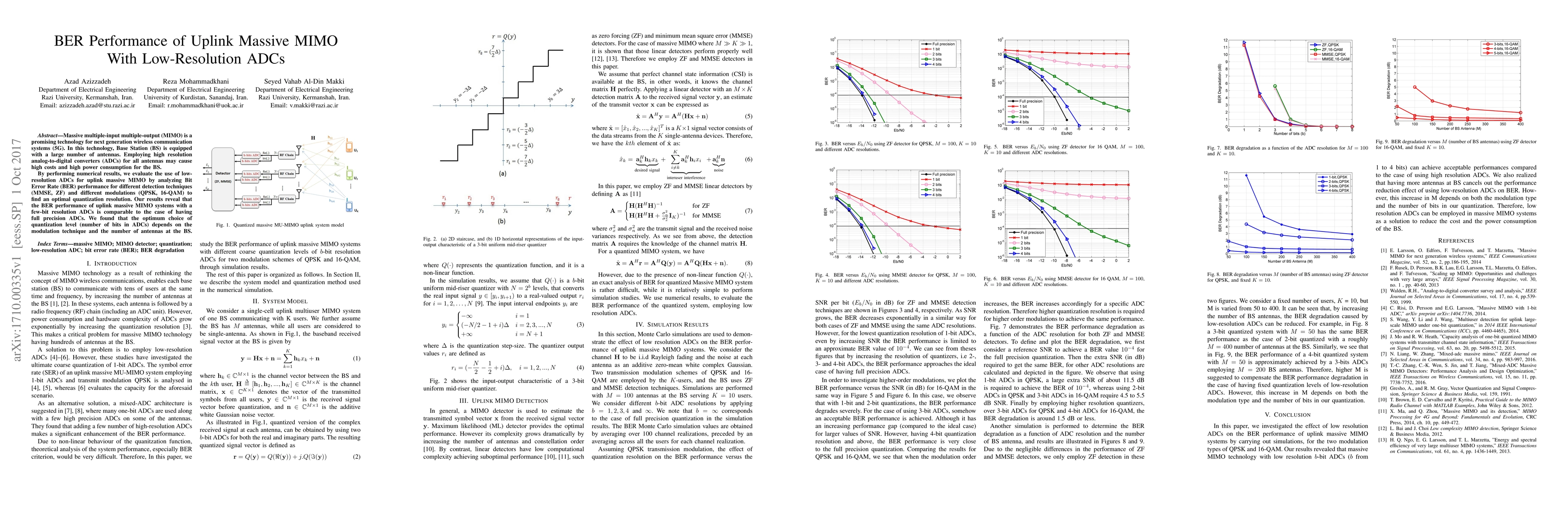 This research provides insights into reducing costs and power consumption in massive MIMO systems by employing low-resolution ADCs without significantly compromising BER performance.