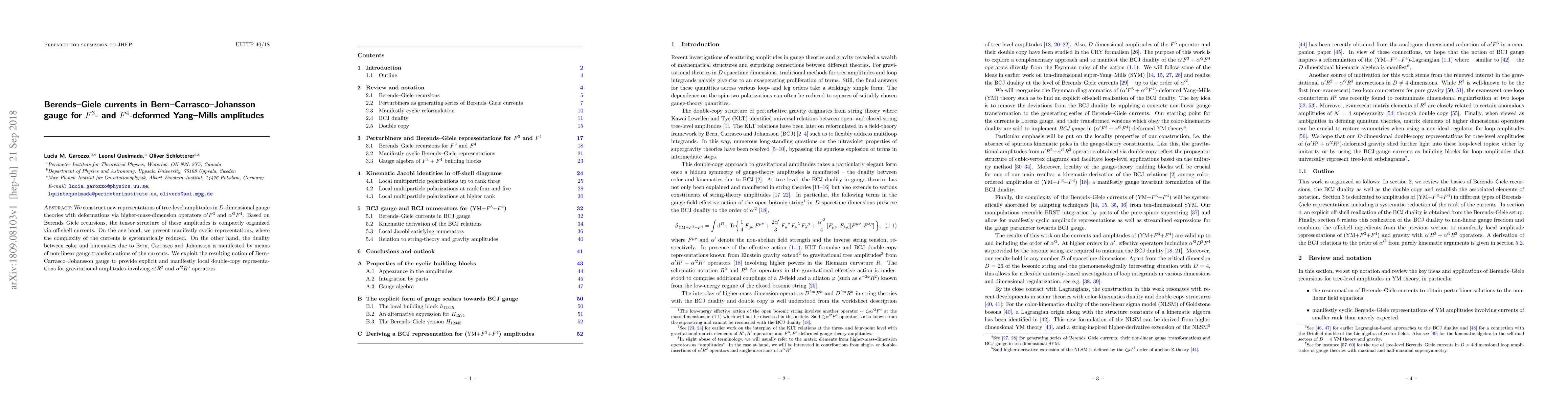 We construct new representations of tree-level amplitudes in D-dimensional gauge theories with deformations via higher-mass-dimension operators $\alpha' F^3$ and $\alpha'^{2} F^4$. Based on Berends-Giele recursions, the tensor structure of these amplitudes is compactly organized via off-shell currents. On the one hand, we present manifestly cyclic representations, where the complexity of the currents is systematically reduced. On the other hand, the duality between color and kinematics due to Bern, Carrasco and Johansson is manifested by means of non-linear gauge transformations of the currents. We exploit the resulting notion of Bern-Carrasco-Johansson gauge to provide explicit and manifestly local double-copy representations for gravitational amplitudes involving $\alpha' R^2$ and $\alpha'^2 R^3$ operators.