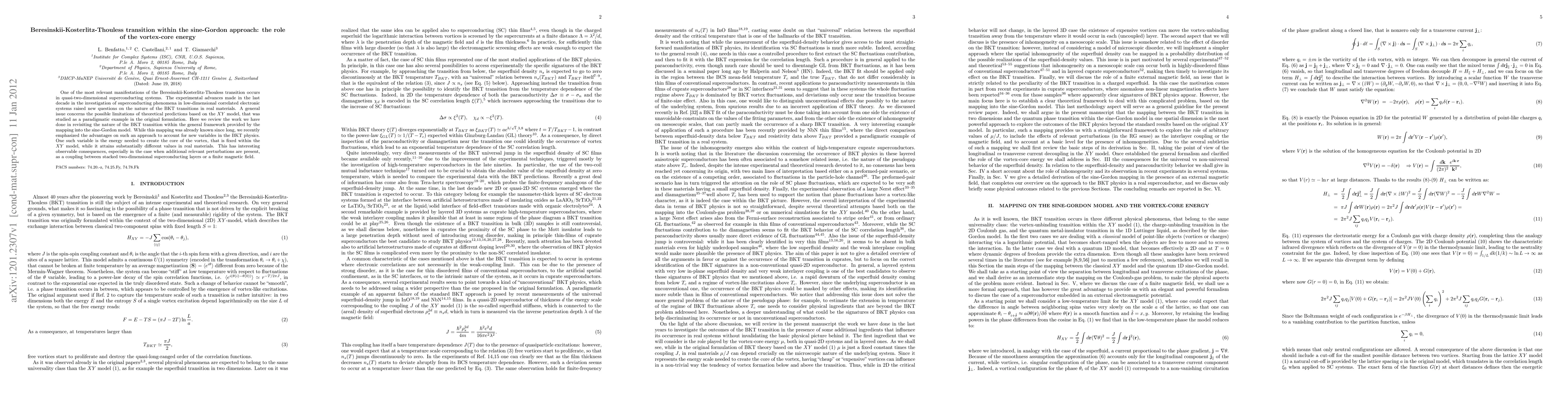 This paper reviews the Beresinskii-Kosterlitz-Thouless (BKT) transition in quasi-two-dimensional superconductors, focusing on the role of vortex-core energy within the sine-Gordon model framework. It highlights how the fixed vortex-core energy in the XY model contrasts with real materials, leading to significant observable consequences under perturbations like interlayer coupling or magnetic fields.