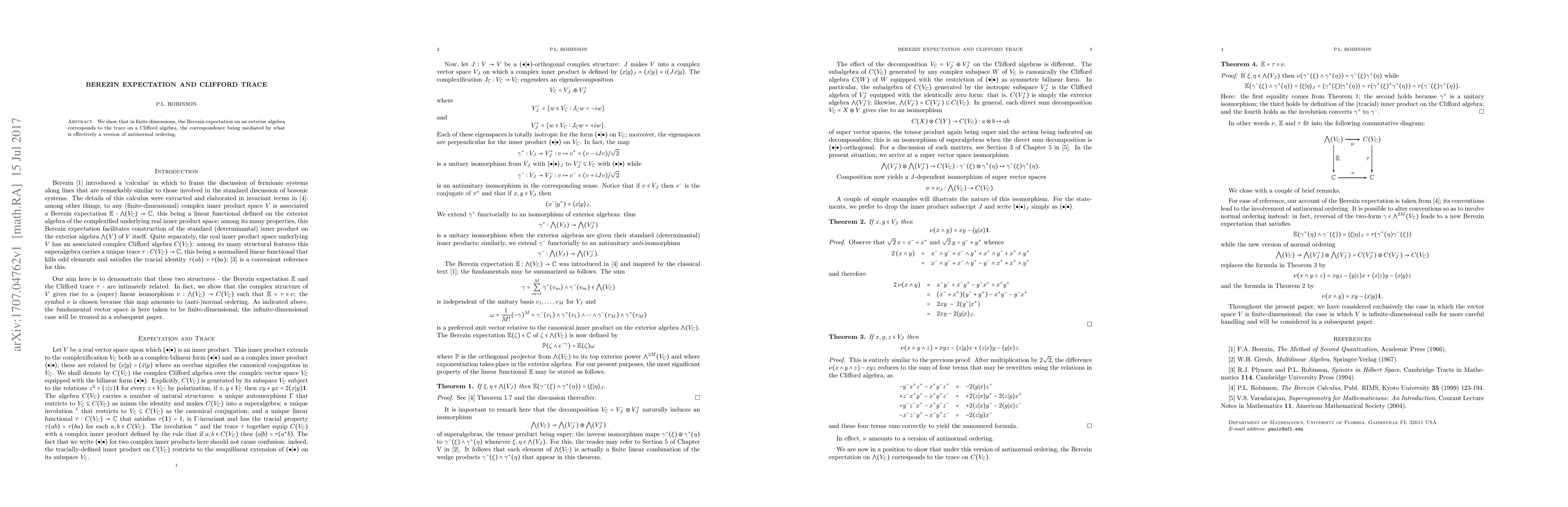We show that in finite dimensions, the Berezin expectation on an exterior algebra corresponds to the trace on a Clifford algebra, the correspondence being mediated by what is effectively a version of antinormal ordering.