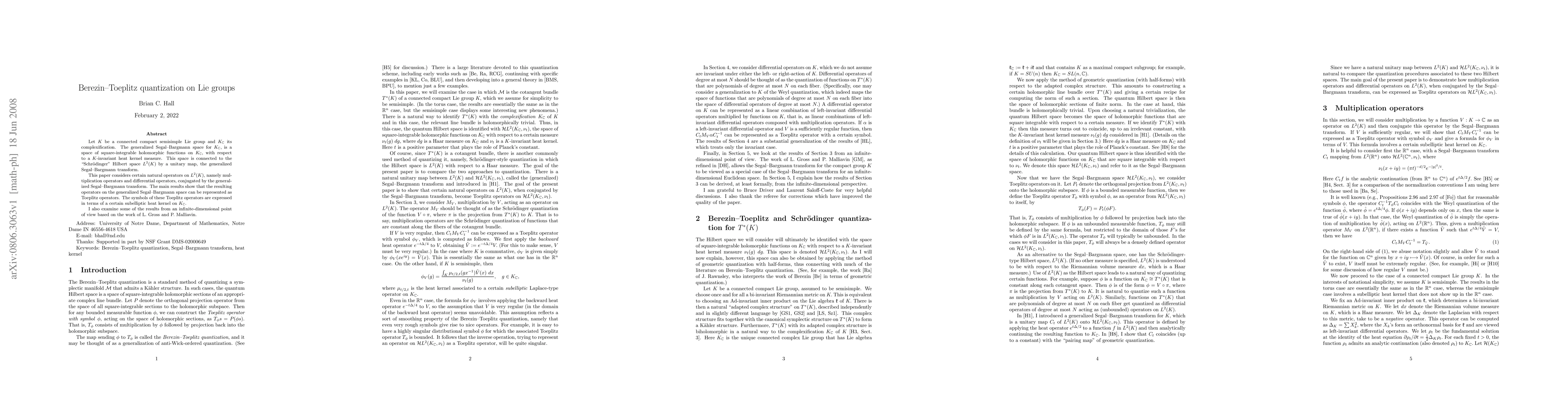 Let K be a connected compact semisimple Lie group and Kc its complexification. The generalized Segal-Bargmann space for Kc, is a space of square-integrable holomorphic functions on Kc, with respect to a K-invariant heat kernel measure. This space is connected to the "Schrodinger" Hilbert space L^2(K) by a unitary map, the generalized Segal-Bargmann transform. This paper considers certain natural operators on L^2(K), namely multiplication operators and differential operators, conjugated by the generalized Segal-Bargmann transform. The main results show that the resulting operators on the generalized Segal-Bargmann space can be represented as Toeplitz operators. The symbols of these Toeplitz operators are expressed in terms of a certain subelliptic heat kernel on Kc. I also examine some of the results from an infinite-dimensional point of view based on the work of L. Gross and P. Malliavin.
