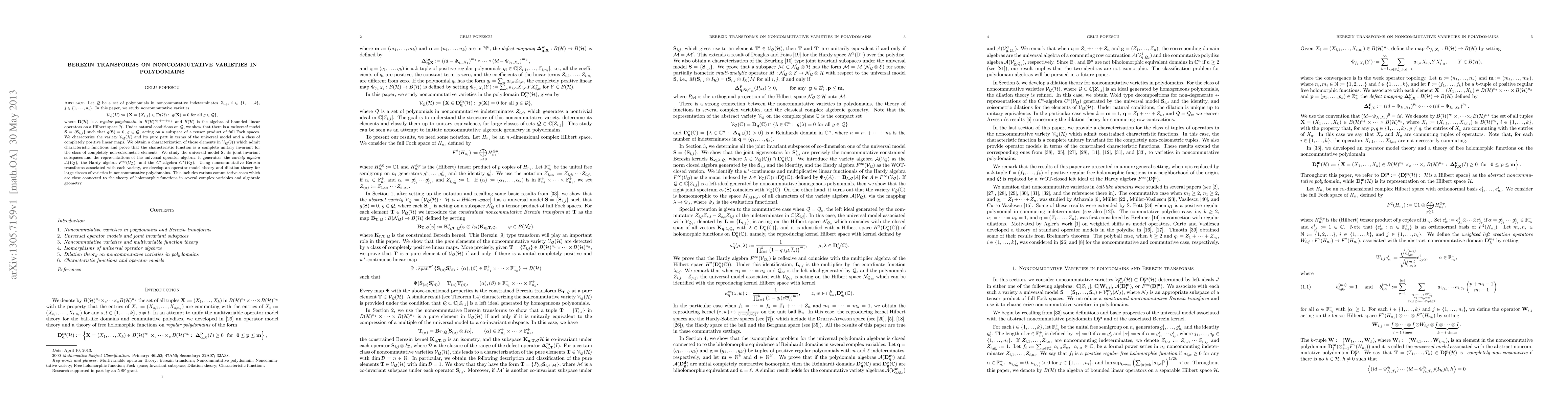 Summary: This paper explores noncommutative varieties in $B(H)^n$ and develops an operator model theory using noncommutative Berezin transforms to classify these varieties up to unitary equivalence, linking these concepts to holomorphic functions and algebraic geometry.